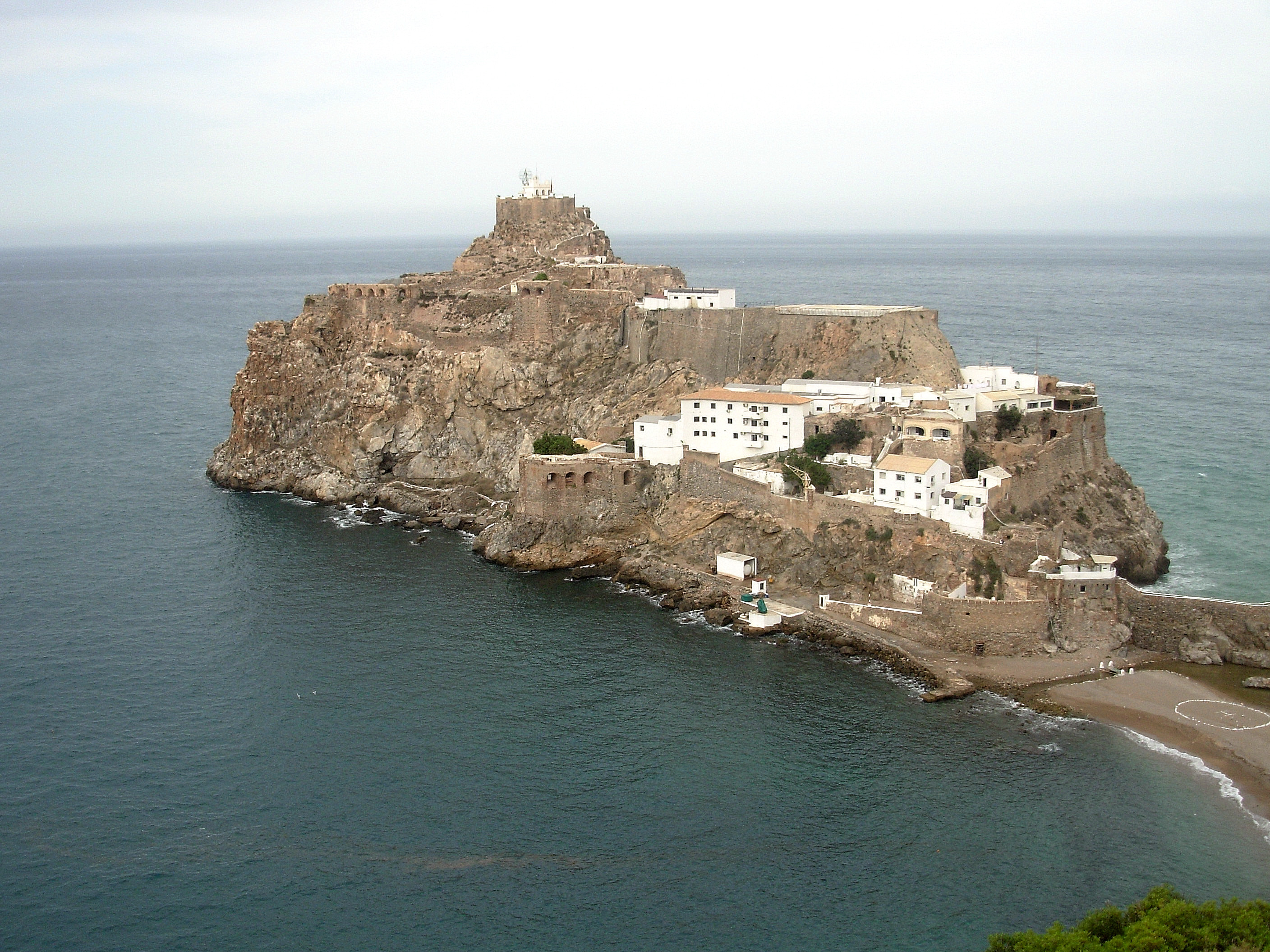 Lo curioso es que originariamente, el peñón era una isla, por lo que no tenía frontera alguna. Pero en 1930 un fuerte temporal (o un terremoto, según las fuentes) formó una lengua de tierra que unió al Peñón con el territorio marroquí. Es un caso único en el mundo. La soberanía de España se reduce a la pequeña isla, por lo que, en teoría el helipuerto que se puede ver en la arena ampliando la imagen sobre estas líneas (en la esquina inferior derecha), está fuera de territorio español, pero se usa, como se puede ver en esta otra foto de fecha indeterminada. No he conseguido en