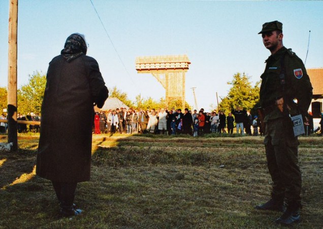 Frontera entre Eslovaquia y Ucrania en Velke Slemence, en el punto donde se encontraban las dos calles mayores cuando eran una sola. © Jesper Nielsen, 2002