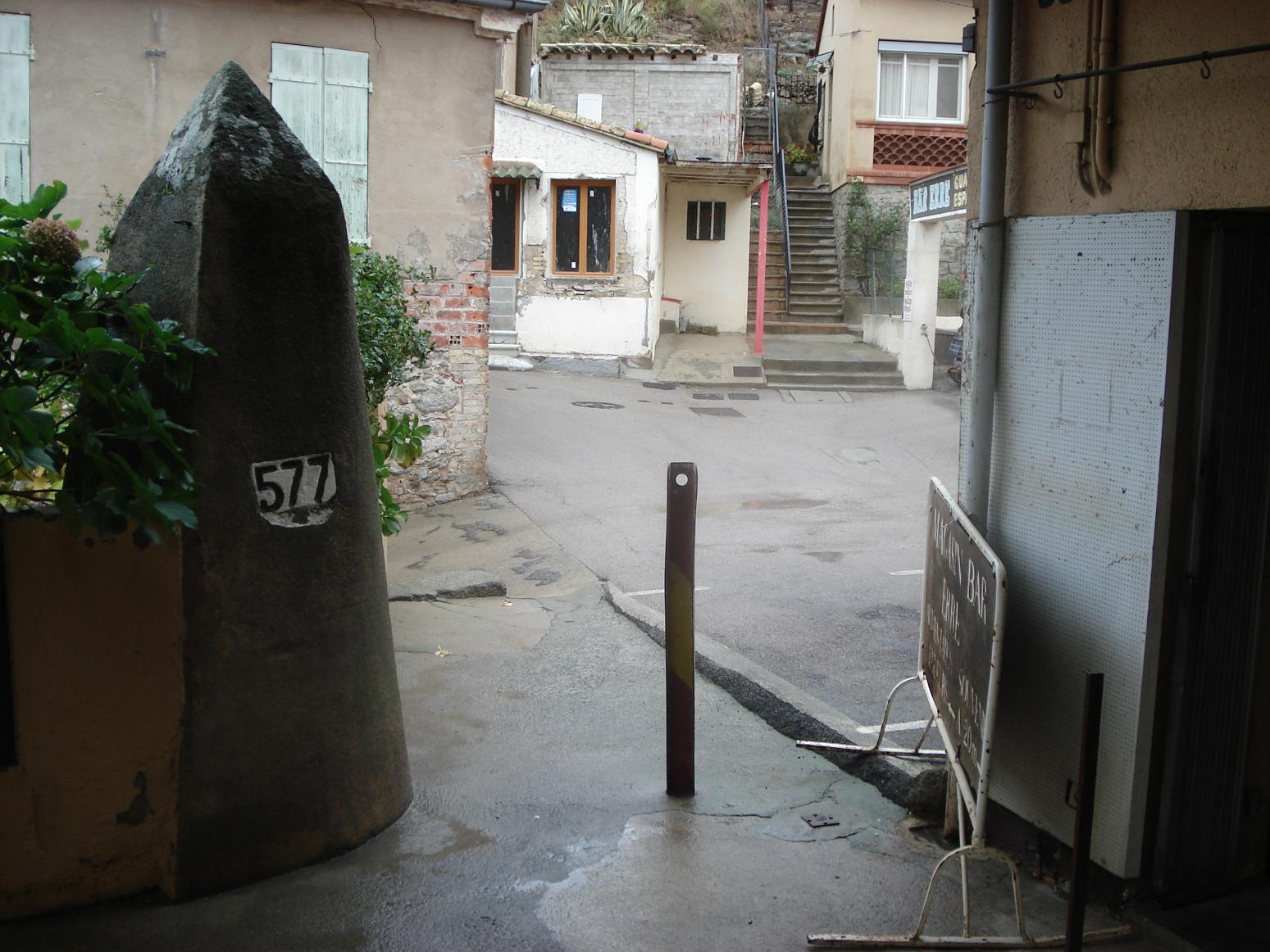 Las fotografías que has puesto en el post y las de la galería en el flickr son muy interesantes e ilustrativas. Vemos como en la autopista la señal que indica el kilómetro 0 de la A-7, ya en territorio español, es usada en su parte inferior por los franceses para colocar una señal del kilómetro 280,5 de la francesa A-9. En las fotos de la parte baja de la calle del Còrrec, poco antes antes de dar a la calle principal, se observan en ambos lados de la calle bolardos y macetas que se me antoja que son mobiliario urbano de estilo francés (intuición totalmente subjetiva, claro). Este hecho, junto con la uniformidad del pavimento, con la situación de los mojones fronterizos 576 y 577, sitos en la parte derecha de la calle, y alguna que otra pista que da el Tratado de 1866, me hacen constatar que la calle Còrrec es francesa en toda su anchura hasta llegar justo a los edificios de su derecha, ya territorio español, y no dividida por la frontera en su centro. Otro asunto es el nombre de este pueblo, en una foto se observa una inscrpción de estilo sicodélico en una pared medianera que reza ‘Benvinguts al Portús’, que creo intuir que se encuentra en lado español del pueblo. Los habitantes del pueblo dicen indistintamente Pertús i Portús, sean del lado español o francés. Lo que creo que nadie nombra, ni ahí ni en las comarcas limítrofes, es el topónimo ‘Los Límites’ o ‘Els Límits’ para designar el lado español del pueblo. Yo diría que la denominación ‘Los Límites’ para el lado español del Pertús es contemporánea, quizás procede de tiempos franquistas más dados a cambiar toponímias tradicionales. De la misma manera que ‘Le Perthus’ es la versión francesa del catalán ‘El Pertús’…