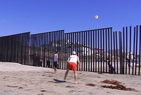 Un partidillo de voleibol en la frontera entre México y Estados Unidos. Quién pillara ahora ese solazo.
