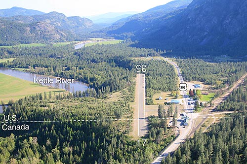 Aeródromo fronterizo de Avey Field, visto desde la Columbia Británica, perdido entre los bosques y las montañas. También visible en Google Maps. Foto: Departamento de Transportes de Washington