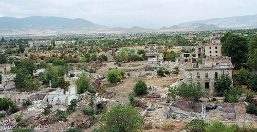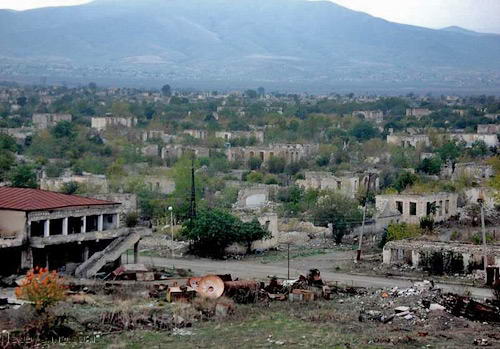 La ciudad quedó gravemente dañada tras la lucha, y, para rematar la jugada, el ejército armenio procedió a destruirla sistemáticamente para evitar que el ejército azerí pudiera recapturarla. Durante los años posteriores el saqueo de la ciudad para la obtención de materiales de construcción fue constante, lo que la redujo aún más a polvo. Agdam es, en la actualidad, un inmenso montón de ruinas. Un único edificio permanece en pie; la mezquita, respetada por los cristianos armenios como el lugar sagrado que es. Los autobuses que conectan distintas localidades de la autoproclamada República del Alto Karabaj cruzan la desastrosa carretera que la atraviesa, sin detenerse en ningún momento. Las fotos están prohibidas por el «ministerio de defensa» local. La ciudad permanece dentro de la zona desmilitarizada que se fijó como parte del acuerdo de alto el fuego de 1994, completamente vacía, en ruinas y abandonada. Sus habitantes ni siquiera esperan volver. Rehicieron sus vidas al otro lado de la frontera, a sólo diez kilómetros de allí. A efectos prácticos, en otra galaxia.