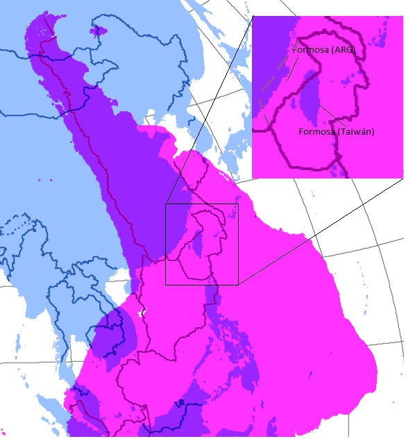 Fragmento del mapamundi de las antípodas mostrando las dos Formosas (original aquí) Sólo una pequeña parte de la isla de Formosa es opuesta a la provincia de Formosa, pero no deja de tener su gracia.