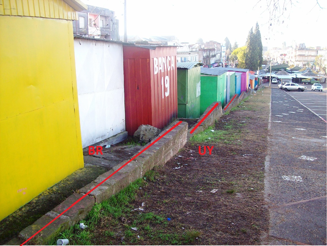Puesto internacional de venta de sillas, único en el mundo.  Debajo, la frontera justo detrás de una serie de puestos brasileños. Como se puede ver, la integración de ambas ciudades es total.