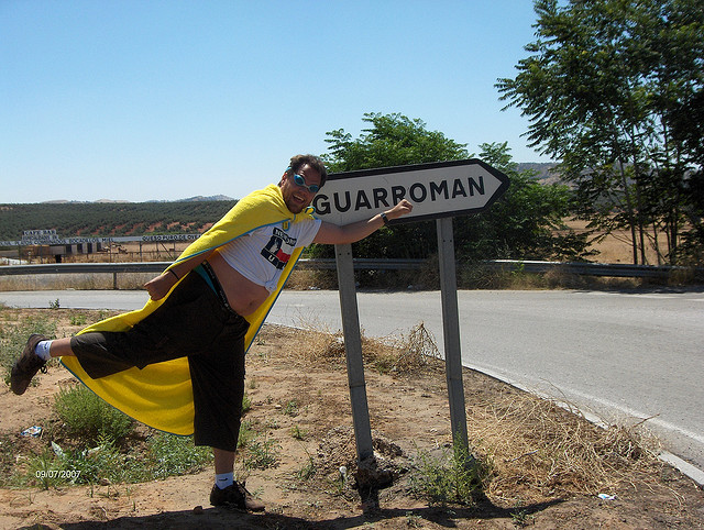 5.-  Guarromán, España. Un mito de las carreteras españolas. Situado en la mismísima entrada a Andalucía en la provincia de Jaén, Guarromán cuenta con apenas tres millares de guarromaneros y un nombre de superhéroe muy cerdo cuya historia podéis leer aquí. Dicho nombre, por cierto, proviene del árabe Wadi-r-rumman, que significa «río de los granados»; esto derivó en Guadarromán y finalmente degeneró en el nombre actual del pueblo. En la localidad podemos encontrar la sede de la Asociación Internacional de Pueblos con nombres Feos, Raros y Peculiares.