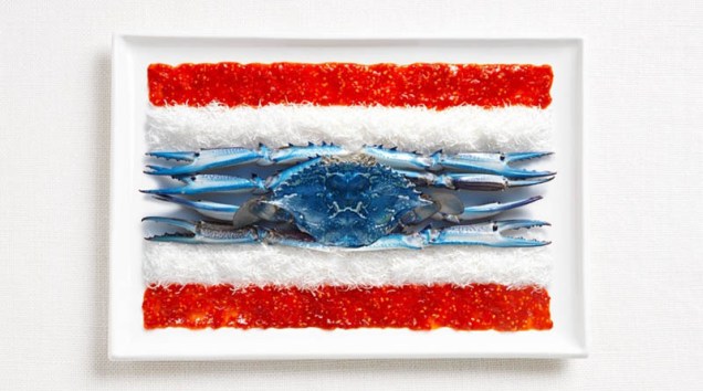 Jajaja, buenísimo. En mi país (Perú) existe un plato llamado «tiradito bicolor» cuya gracia es justamente parecer la bandera nacional. Consiste en «tiradito» clásico (lonjas de pescado blanco como corvina o lenguado, necesariamente fresco y crudo, bañadas en zumo de limón de pica y un poco de sal, lo que lo torna blanco) al centro y tiradito bañado en salsa de rocoto o ají limo (ambas rojas) a los costados. También hay tricolor, en el que se suma salsa de ají amarillo. Como anécdota adicional, hay un postre llamado «clásico» por combinar los colores de los dos equipos más populares (Alianza Lima y Universitario), a base de maíz morado, canela y arroz con leche.