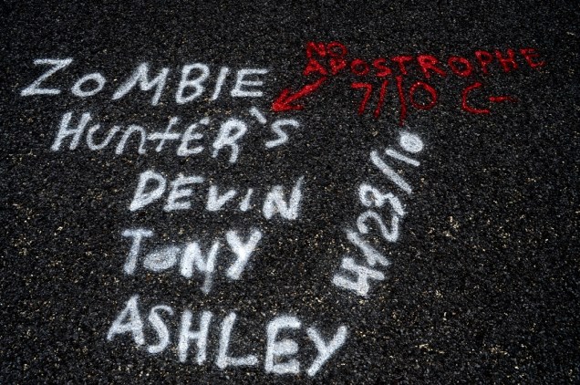 «Cazadores de Zombis: Devin, Tony y Ashley». Lástima de apóstrofe mal puesto. La nota baja un peldaño
