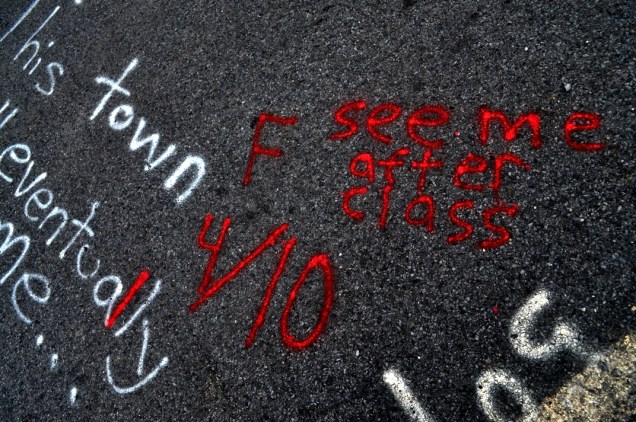 Uno de los ocasionales visitantes del pueblo se encontró las pintadas y, horrorizado, decidió tomar cartas en el asunto. No es que le molestaran los grafittis en el asfalto, pero sí las faltas de ortografía. Armado con un «bolígrafo» rojo procedió a corregir a los díscolos alumnos de Centralia.