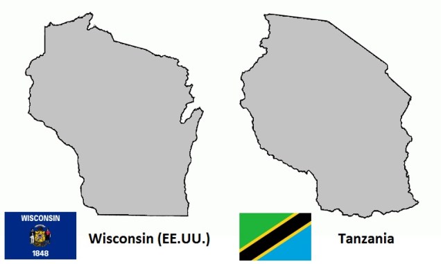 El estado norteamericano de Wisconsin y la parte continental de Tanzania (a.k.a. Tanganica)