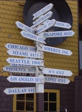 Tradicional cartel kilométrico que encontramos en cualquier sitio que esté a tomar viento de la civilización. Éste está en Nome (ver arriba a la derecha la distancia hasta Diomede)