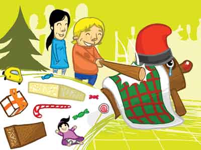 Y cuando llega la Nochebuena, se produce la hecatombe. El genocidio, incluso. En centenares de miles de hogares catalanes se reproduce la misma escena sanguinolienta. Los niños, armados con palos como si fueran nenoazis griegos, arremeten contra el pobre Tió en una orgía de violencia sólo equiparable al genocidio de Ruanda o al comportamiento de la defensa del Atlético de Madrid. Al grito de «Caga, Tió» (recordemos que el pobre tronco suele llevar dos semanas estreñido) los pequeños émulos de la pandilla protagonista de La Naranja Mecánica proceden a apalear salvajemente al pobre tronco que nada les ha hecho, mientras entonan una melodía que ha poblado las pesadillas de centenares de troncos: