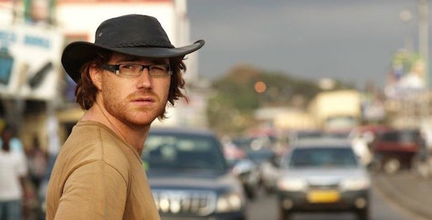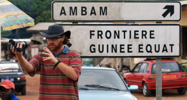 Graham Hughes grabándose en la frontera de Guinea Ecuatorial y Camerún