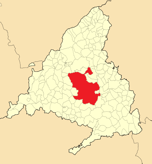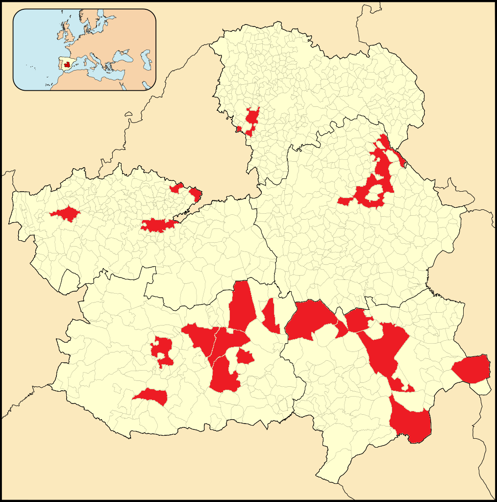 Un detallito: En la provincia de Cuenca hay un único término municipal sombreado en rojo, la capital. El por qué de esa compleja silueta con un enclave dentro lo podéis leer en Pura Sierra.