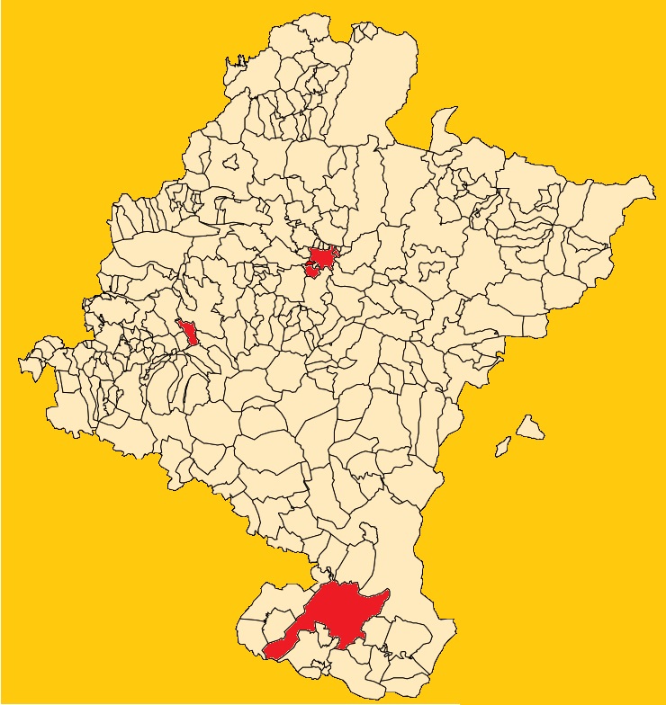 En el caso de Navarra los municipios que suman la mitad de la población son siete, cinco de ellos en el área metropolitana de la capital, con superficies que oscilan entre los 24 kilómetros cuadrados de Pamplona y las exiguas 140 hectáreas de Barañain, que le otorgan una densidad de población de 14.000 habitantes por kilómetro cuadrado.