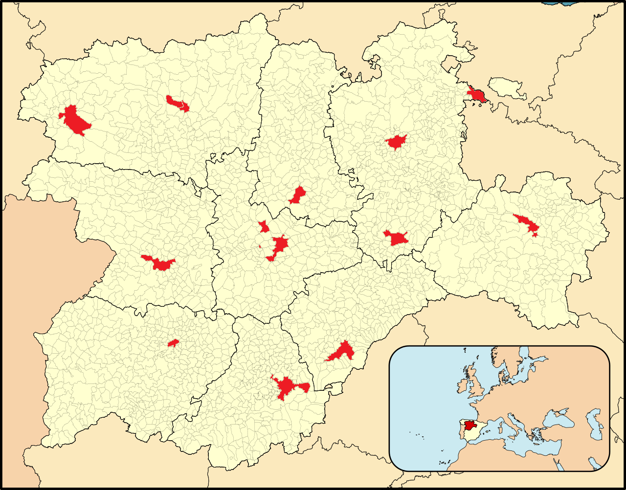 En Castilla y León los 13 de los municipios más poblados de la comunidad suman más habitantes que los 2.231 restantes. Cabe destacar que Castilla y León es la comunidad autónoma con más municipios de España, sumando más de una cuarta parte del total. Las nueve capitales provinciales, más Miranda de Ebro, Aranda de Duero, Ponferrada y San Andrés del Rabanedo, son las localidades que se llevan la mitad de la población castellano-leonesa.