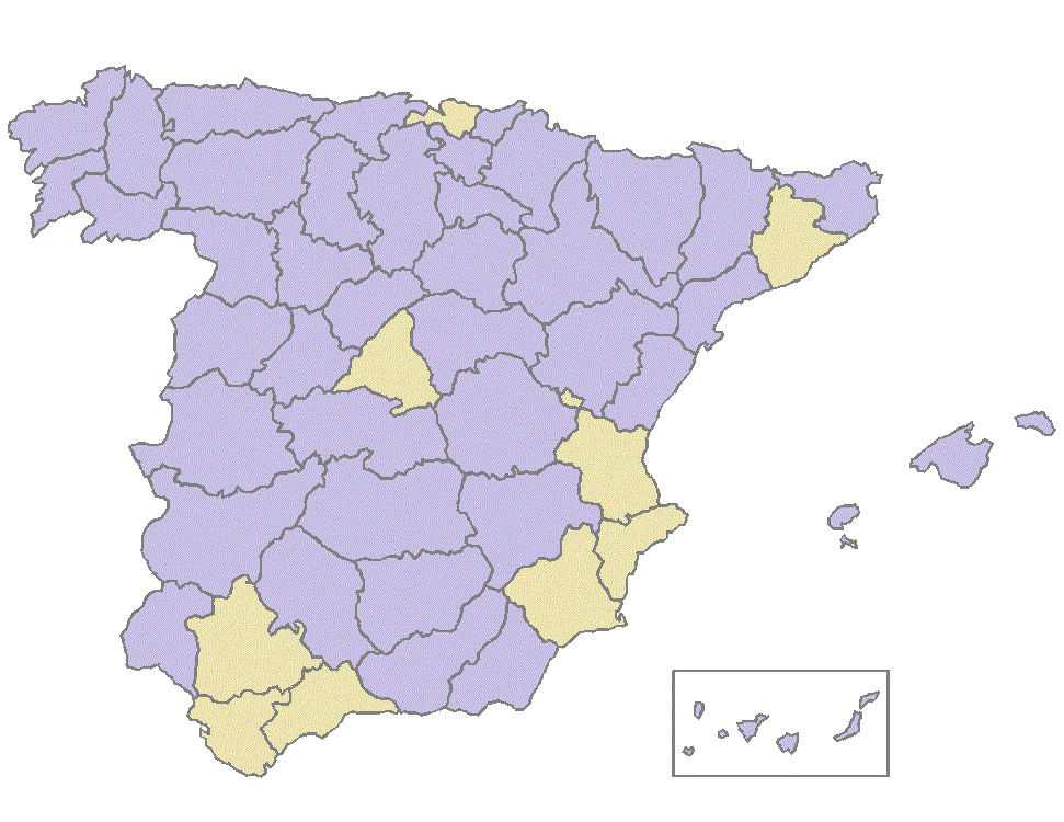 Fuentes: Tres de los mapas de España los tomé de una entrada de 2010 de Vectart.com, al igual que algunos de los datos demográficos. El resto son de cosecha propia, realizados a partir de los datos de la Wikipedia o la fuente enlazada en el texto, en su caso.