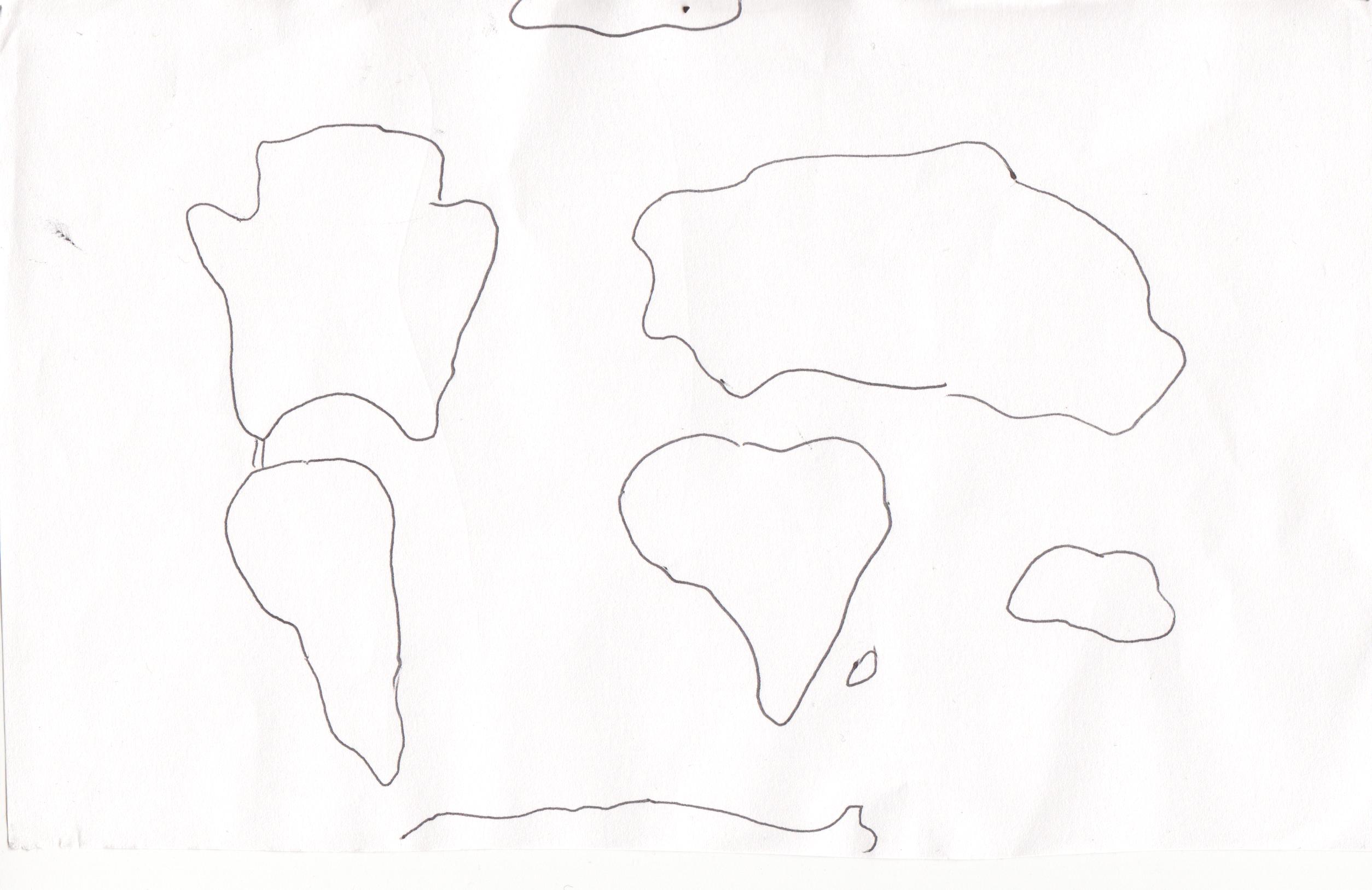 Pues bien. En cierta ocasión un profesor de la Universidad de Michigan llamado Zak Ziebell les propuso a sus alumnos hacer lo mismo, aunque para simplificar no les exigió trazar fronteras, únicamente los contornos de los continentes. ¿Parece fácil? Quizás no lo es tanto en vista de lo que pasó. Una vez dibujados los mapas el profesor procedió a agregarlos digitalmente. El resultado final está entre lo hilarante y lo aterrador: