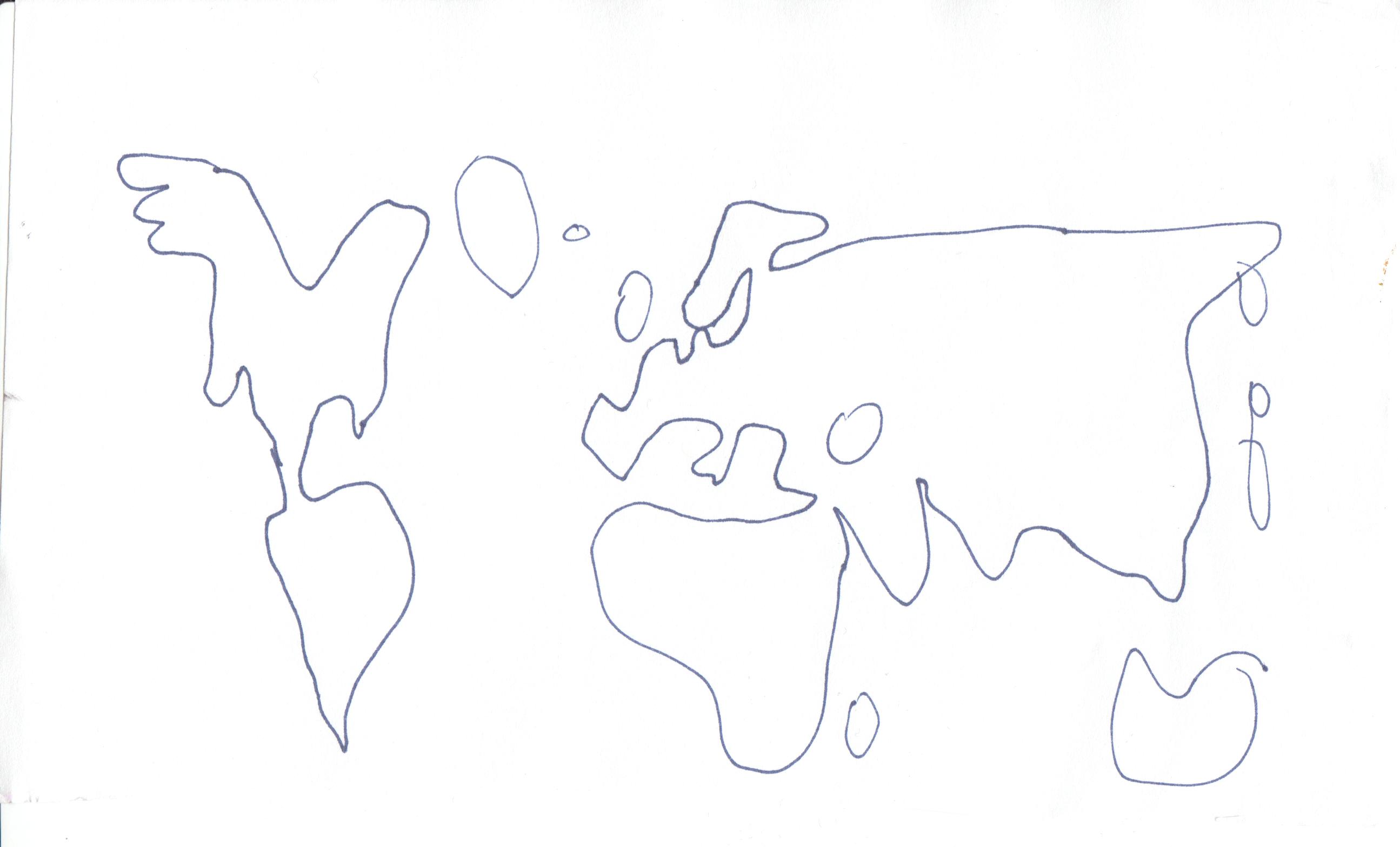 Vaya risas me he echado con algunas imágenes, aunque seguramente sí me pongo a intentarlo me salga algo similar. El mapa mundial me lo sé más o menos bien pero dibujando soy entre malo y peor. Por otro lado, buen experimento el de este profesor