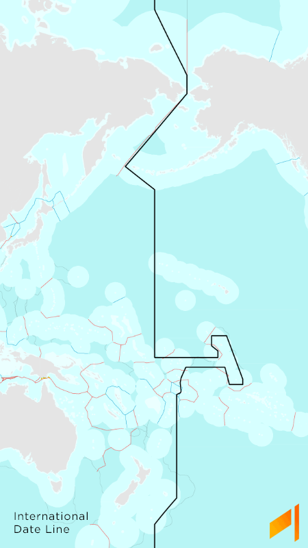 La mayor parte de los mapas que incluyen la IDL la representan a través de líneas rectas para dejar en el lado correspondiente los territorios de los países que le dan forma. Pero, ¿es esa su forma real? Partamos del hecho de que la IDL no es una línea real que tenga una definición consensuada. Pero podemos llegar a una fácilmente. Los versados en geografía conocerán el concepto de ZEE o Zona Económica Exclusiva. Es parte del territorio sobre el que ejerce soberanía un Estado, y que se extiende 200 millas náuticas más allá de la costa del país. ¿Qué hora es en la ZEE de un país? La lógica nos dicta que la misma que en la costa más cercana de dicho país. Teniendo en cuenta esto, se puede trazar una Línea Internacional de Cambio de Fecha que rodee los teritorios de los países, y que es sensiblemente diferente a la representación mediante líneas rectas a la que estamos acostumbrados.