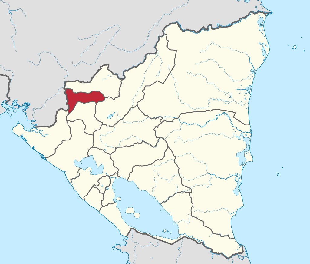 Ubicación de Madriz dentro de Nicaragua, limítrofe con Nueva Segovia al Norte y con Honduras al Oeste