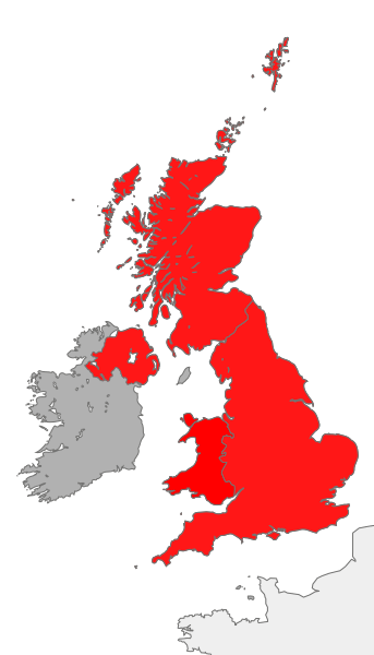 • Reino Unido: La suma de Gran Bretaña y el trozo de la isla de Irlanda bajo soberanía de Londres (Irlanda del Norte, vamos). El nombre completo del país es «Reino Unido de Gran Bretaña e Irlanda del Norte», por cierto.