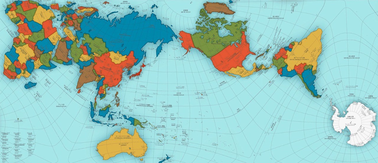 Parecería que el mapamundi tiene un sentido didáctico, más que nada. Y en ese caso yo me pregunto por qué no utilizar directamente un globo terráqueo o un Mercator normalito para los atlas (salvo tal vez para los continentes).