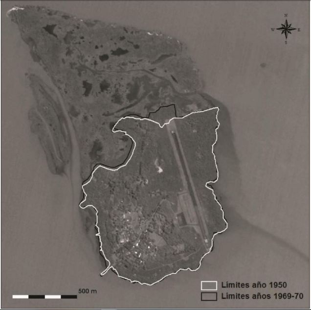 Nos plantamos así en 1973, cuando bajo el último gobierno de Perón se firmó el Tratado del Río de la Plata y su Frente Marítimo. Aconsejado por un asesor bastante sensato, el gobierno de Uruguay aceptó la soberanía argentina sobre Martín García de forma definitiva. A cambio, obtuvo la garantía por escrito de la desmilitarización de la isla, que quedaría como parque natural, y la soberanía de las aguas que rodean el lugar, incluyendo, claro, el pedazo de territorio llamado Timoteo Domínguez, que había crecido notablemente en los quince años anteriores y que, se veía claramente, iba a acabar tocándose con la isla de los vecinos. Martín García es un enclave porque tiene lo que los argentinos hace dos siglos llamaron una «costa seca», es decir, carece de aguas territoriales. En las siguientes cuatro décadas Timoteo Domínguez ha seguido acumulando materiales y creciendo hasta unirse a Martín García, primero de forma precaria, actualmente de forma total. Y así nació una frontera terrestre que no existía, al abrazar la nueva isla a la vieja. Martín García es una roca y Timoteo Domínguez un montón de arena arrastrada por la corriente, pero desde el aire son una única isla en la que la frontera es el pegamento que une ambas partes, cada una de las cuales mide un par de kilómetros cuadrados. ¿Cómo llamamos a este lugar que ya no son dos islas sino una? El profesor Edison González-Lapeyre, el mismo asesor sensato que citábamos al principio de este párrafo, propuso el nombre que da título a esta entrada: Isla de la Unión. Desde este modesto rincón de la red, apoyamos fuertemente el cambio de nombre, o de nombres.