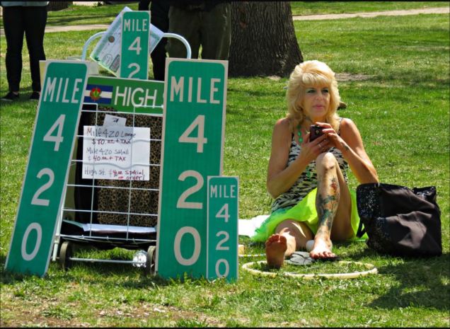 Señora vendiendo miliarios de distintos tamaños en una concentración pro legalización en Denver (Colorado Sands – Flickr)