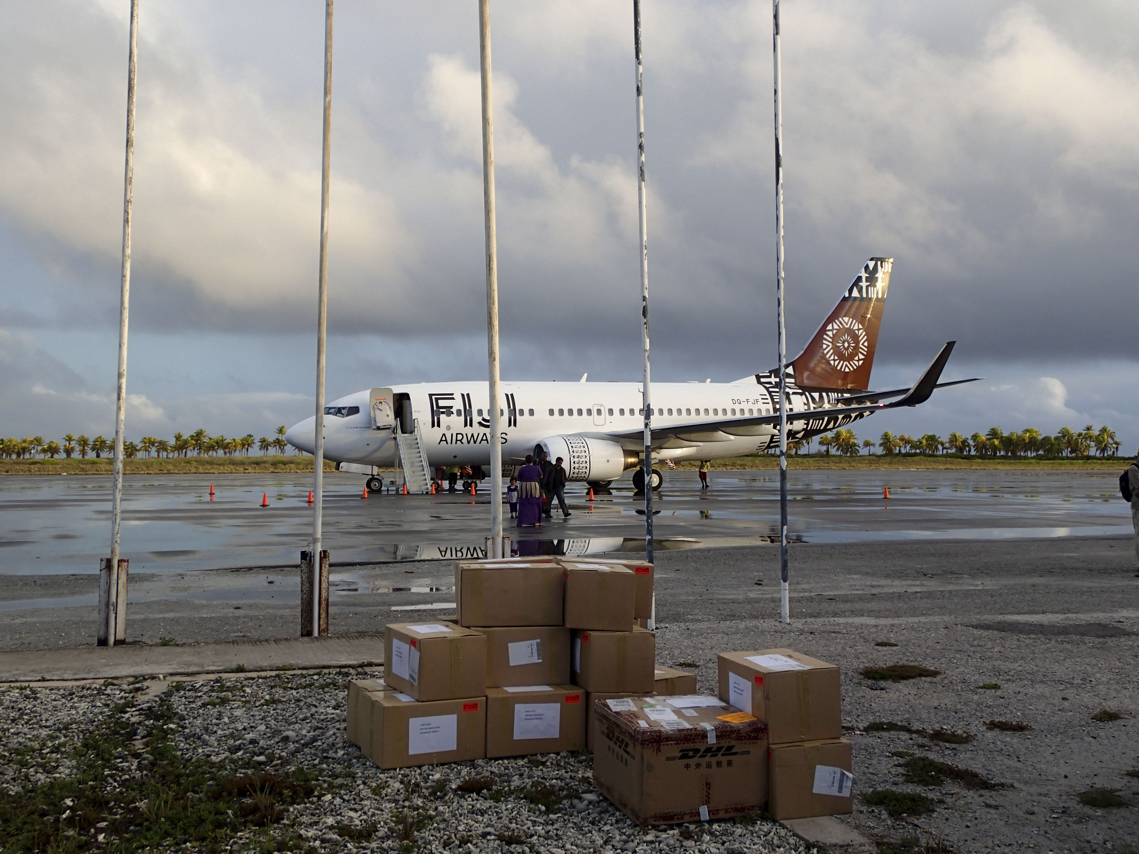 Hay dos compañías aéreas que vuelan entre las dos Samoas: Talofa Airways y Samoa Airways. Entre las dos suman 17 vuelos entre Apia y Pago Pago programados para el 1 de enero de 2020: el primero a las ocho y media de la mañana hora local (trece horas menos en España), que aterriza a las ocho y cinco del día anterior, y el último a las cinco de la tarde, que tomará tierra treinta y cinco minutos después, esto es a las cuatro menos veinticinco de la tarde del 31 de diciembre.