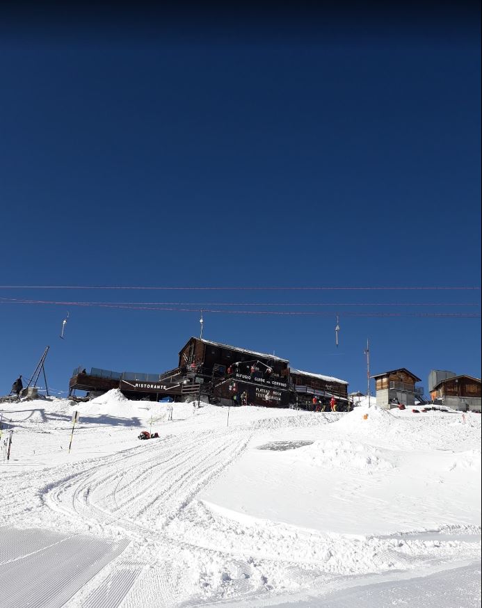 El refugio Guide del Cervino se sitúa a 3480 m sobre el nivel del mar en la Testa Grigia, un contrafuerte de la Gobba di Rollin, a caballo entre Italia y Suiza. Literalmente. No es extraño en los Alpes encontrar picos y refugios prácticamente compartidos entre dos (o más) países. De hecho, en el macizo del Monte Rosa se pueden contar unos cuantos, entre ellos el famoso Refugio Regina Margherita, el edificio a más altitud de Europa, y el lugar más alto donde uno puede degustar la pizza del mismo nombre acompañada de una buena cerveza de barril. Lo que hace único al Refugio Guide del Cervino es que recientemente, cambio climático mediante (o no, según el gusto de cada uno), haya cambiado de país. Sin que la propia cabaña se haya movido.