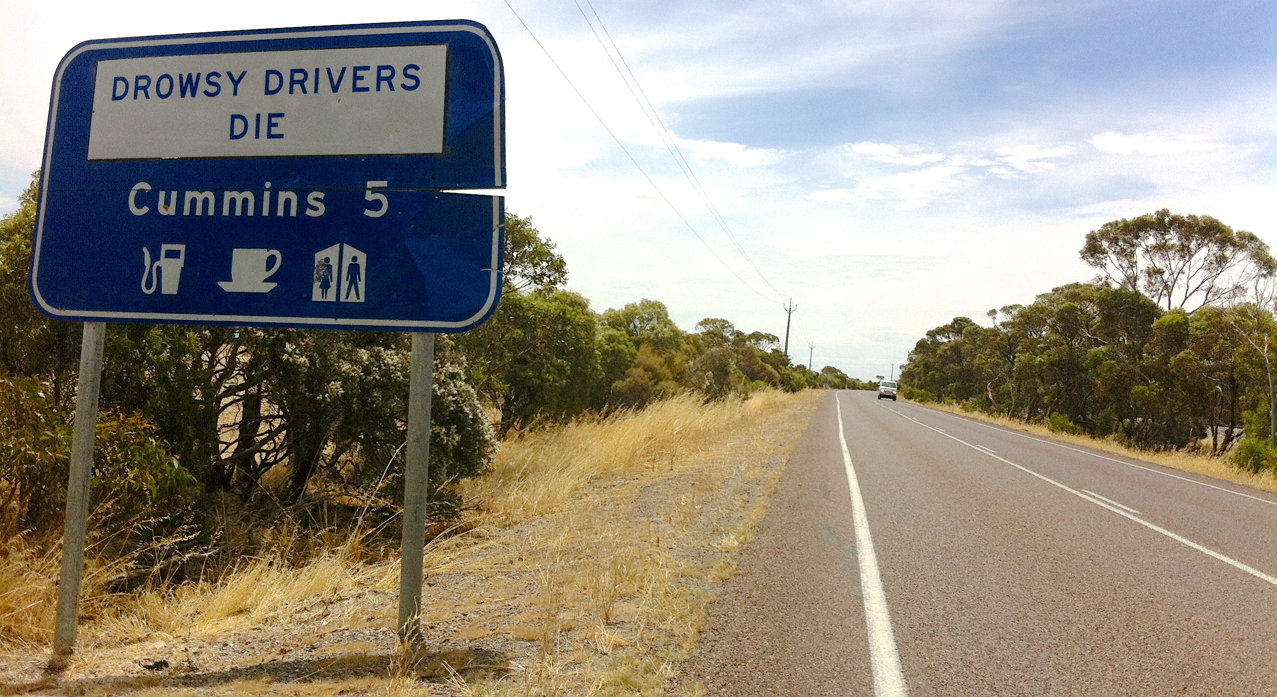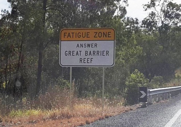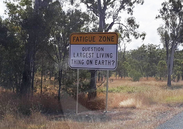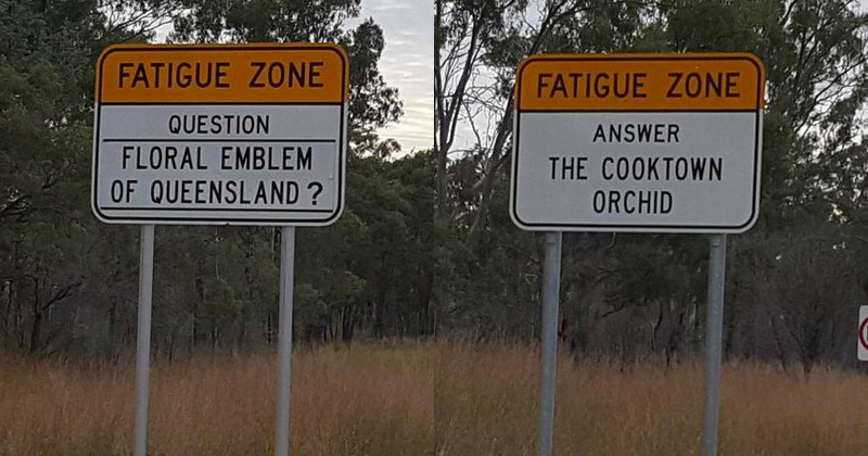 Todo en Australia es superlativo. Los bichos son más venenosos, las moscas son más numerosas y las carreteras son más, mucho más largas que en la mayor parte de los países del mundo. Pero aunque es posible encontrar carreteras igual de largas en otros lugares, lo verdaderamente difícil es encontrarlas tan vacías y aburridas. Cruzar el Outback en cualquier dirección supone un par de días de viaje como poco, atravesando una ingente, enorme, descomunal cantidad de nada en absoluto. Para evitar que los conductores se queden dormidos y se salgan de la carretera, hace unos años el Departamento de Transporte de Queensland tuvo la idea de instalar carteles con preguntas y respuestas estilo Trivial Pursuit en una de las carreteras del Estado