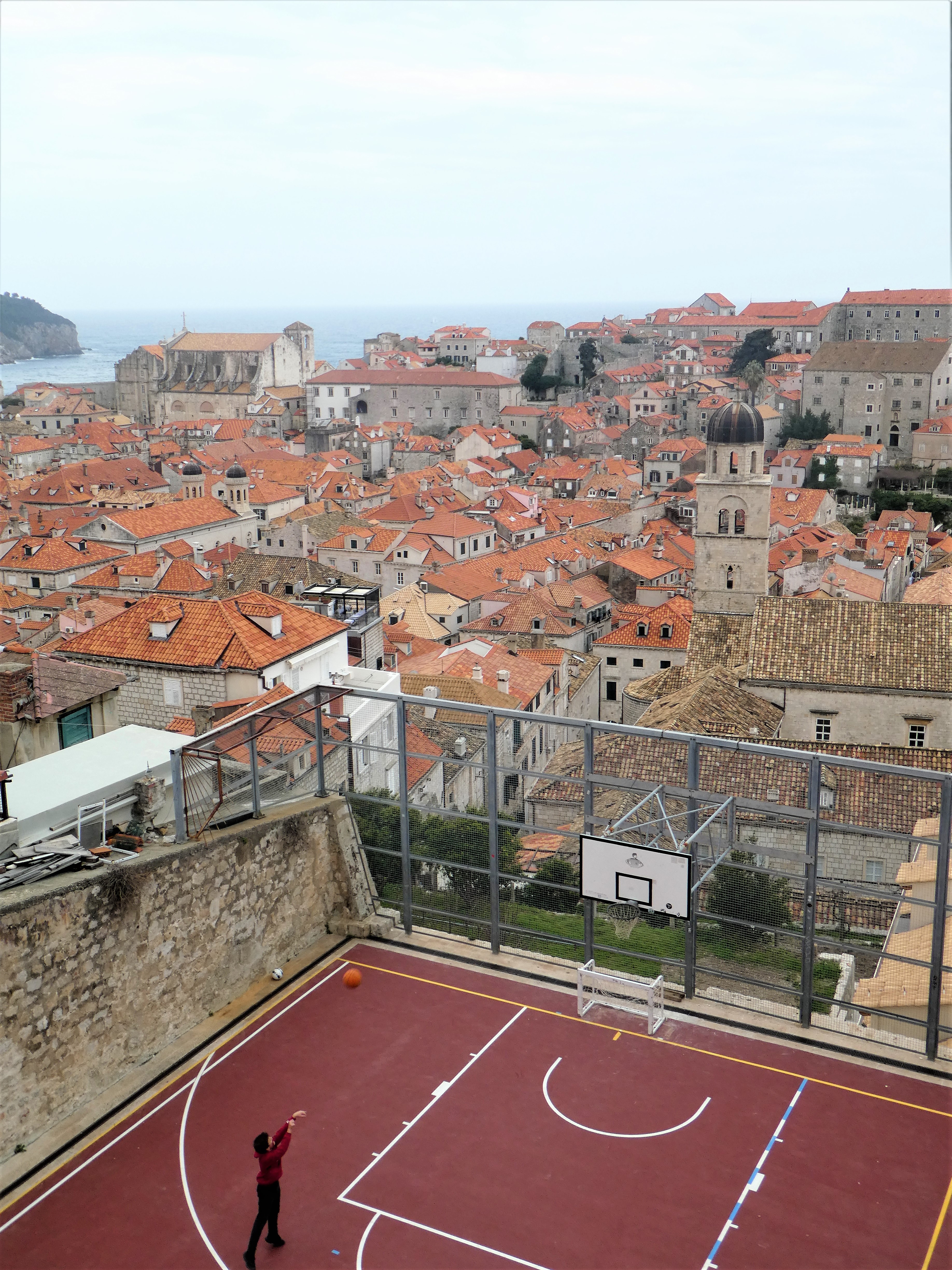 Probablemente el mejor campo de futbolcesto de los Balcanes, visto desde la Torre Minceta, la más alta de la ciudad