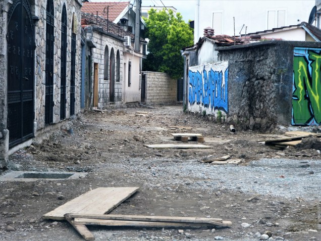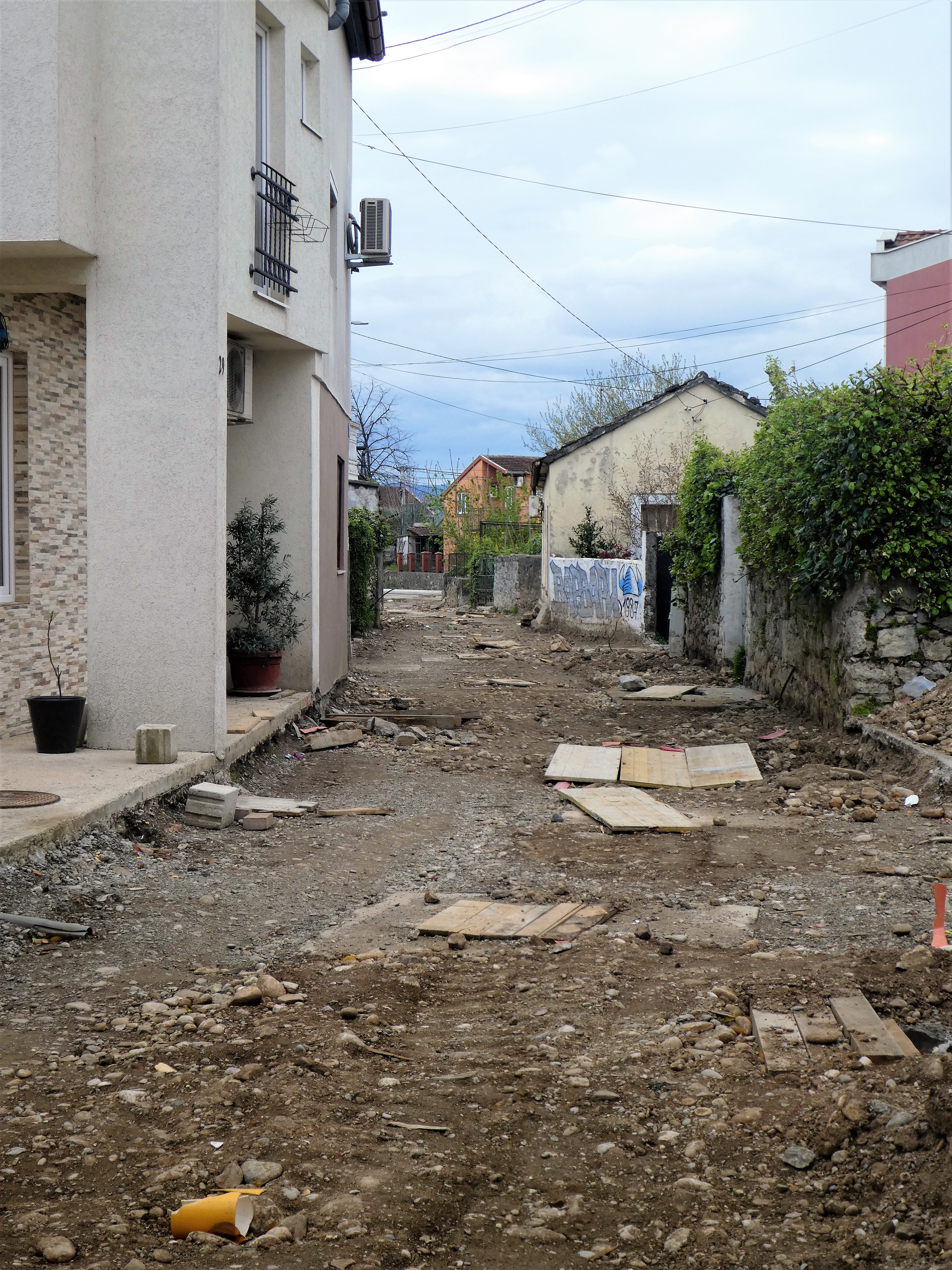 La calle más bonita del centro histórico de Podgorica. Histórico, como en «la maldad del planificador urbano que hizo esto es histórica»
