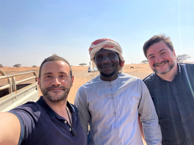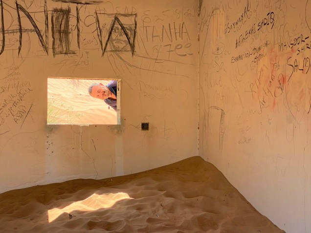 Dejamos nuestro coche tirado en mitad de una pista en el desierto, con nuestras maletas dentro, y nos montamos en la pick up sin matrículas de un desconocido porque alguien tiene que ponerse en el extremo izquierdo de la campana de Gauss. Enumeramos qué cosas horribles podían pasarnos. Robo de equipaje, dejarnos tirados en el pueblo fantasma o tráfico de órganos fueron algunas de las que se nos ocurrieron. A eso Javi le tenía que añadir la hernia de disco; nunca he sufrido una, pero estoy seguro de que meterse en el suelo de la cabina de carga de una pick up desvencijada de 1974 con los amortiguadores destrozados a dar saltos sobre las dunas no es algo que los traumatólogos recomienden como tratamiento. Pese a nuestros temores y nuestras fantasías funestas, llegamos al poblado sin novedad en apenas 15 minutos.