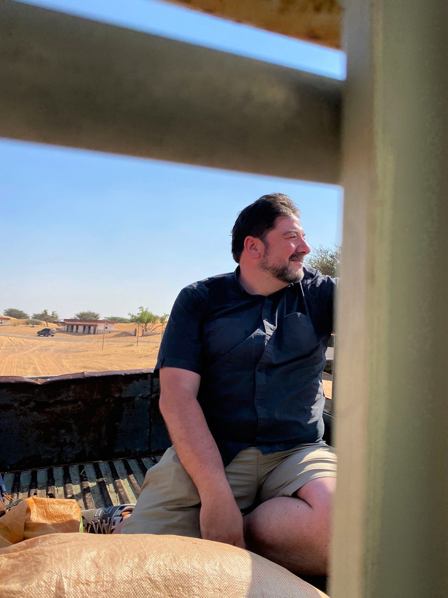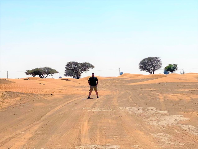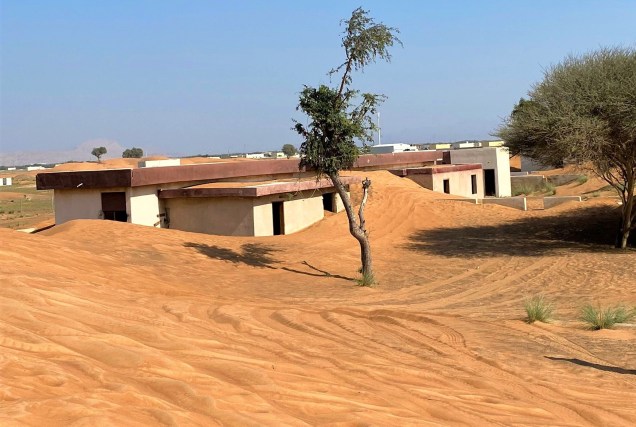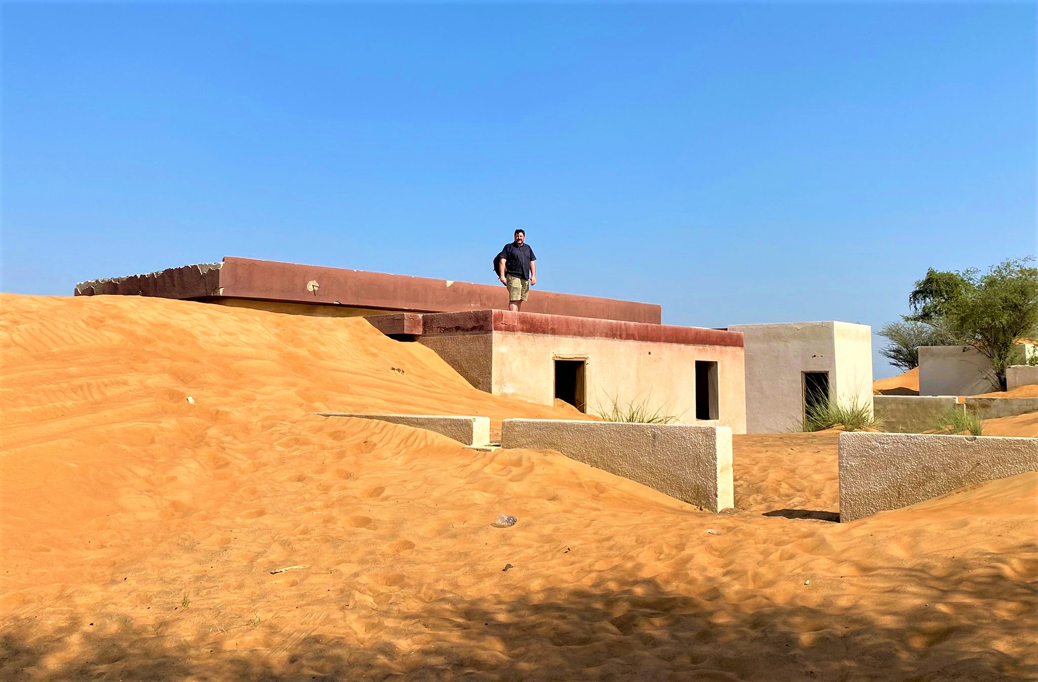 Era nuestro último día en Dubái y en Emiratos. Queríamos visitar algún sitio bizarro porque, bueno, somos como somos. Así que consultamos Atlas Obscura, nuestra página de referencia al respecto, y encontramos un pueblo fantasma devorado por el desierto a una hora en coche de la ciudad. Y ya está, no había mucho más que discutir. Fuera de Dubái y Abu Dabi, y de la carretera que une ambas ciudades, circular en coche por Emiratos es una experiencia a la que el europeo occidental medio no está acostumbrado. Las normas, o al menos su cumplimiento, son notoriamente más laxas e informales, así que es bastante común encontrarse cosas extrañas, por ejemplo, manadas de dromedarios cruzando la autopista. A estas alturas del viaje ya estábamos bastante curados de espanto, pero no deja de impresionar la facilidad con la que se mueven esos bichos en estado salvaje en el interior del país.