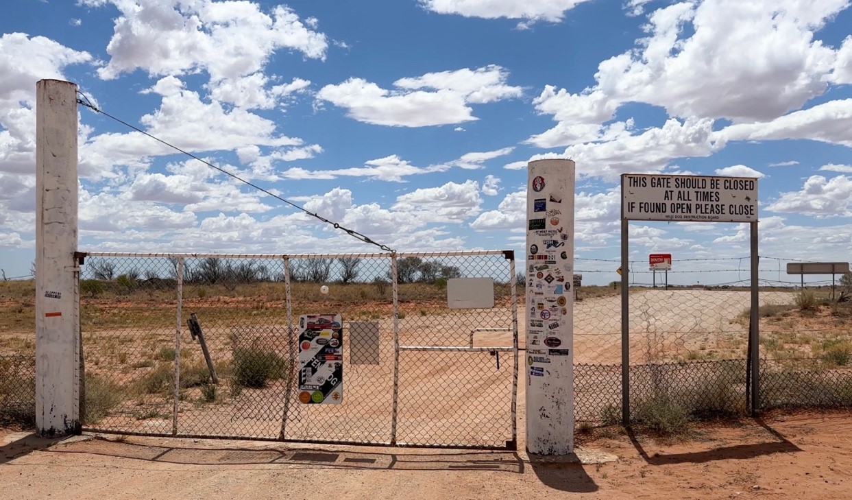 La llegada a Cameron Corner después de casi de 150 km desde Tibooboorra por algo parecido a una carretera se escenifica cruzando la mítica valla de los dingos, que con sus 5,614 km de extensión protege las ganaderías del sur de Queensland, Nueva Gales del Sur y Australia Meridional de estos depredadores. El proceso de cruzar la valla es tan sofisticado como parar el coche, abrir el portón, cruzar con el coche y cerrar el portón. En Cameron Corner hay un camping que incluye también tienda, pub y gasolinera todo en uno. Debido a las peculiaridades del lugar, la tienda tiene su jaleo administrativo: Físicamente se encuentra en Queensland, su código postal es de Nueva Gales del Sur y su prefijo telefónico de Australia Meridional. Por cierto, por si alguien está interesado, el local, incluyendo todo el camping, se encuentra en venta.