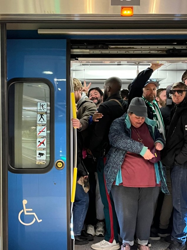 Después del paseo por el cementerio y el Vasa me subí a un tren camino del aeropuerto de Arlanda. Tuve la inmensa suerte de coincidir con las aficiones del AIK Solna y el Hammarby, dos de los tres equipos de Estocolmo, que disputaban un derbi a la misma hora a la que yo debía estar en Arlanda para tomar mi vuelo de vuelta a casa. Fue un viaje, digamos, entretenido. Uno se podría creer que los suecos son gente racional, fría, poco propensa a hooliganismos o a montar follón en el transporte público, pero veinte minutos en un cercanías con dos mil hinchas le quitan esa idea de la cabeza rapidito.