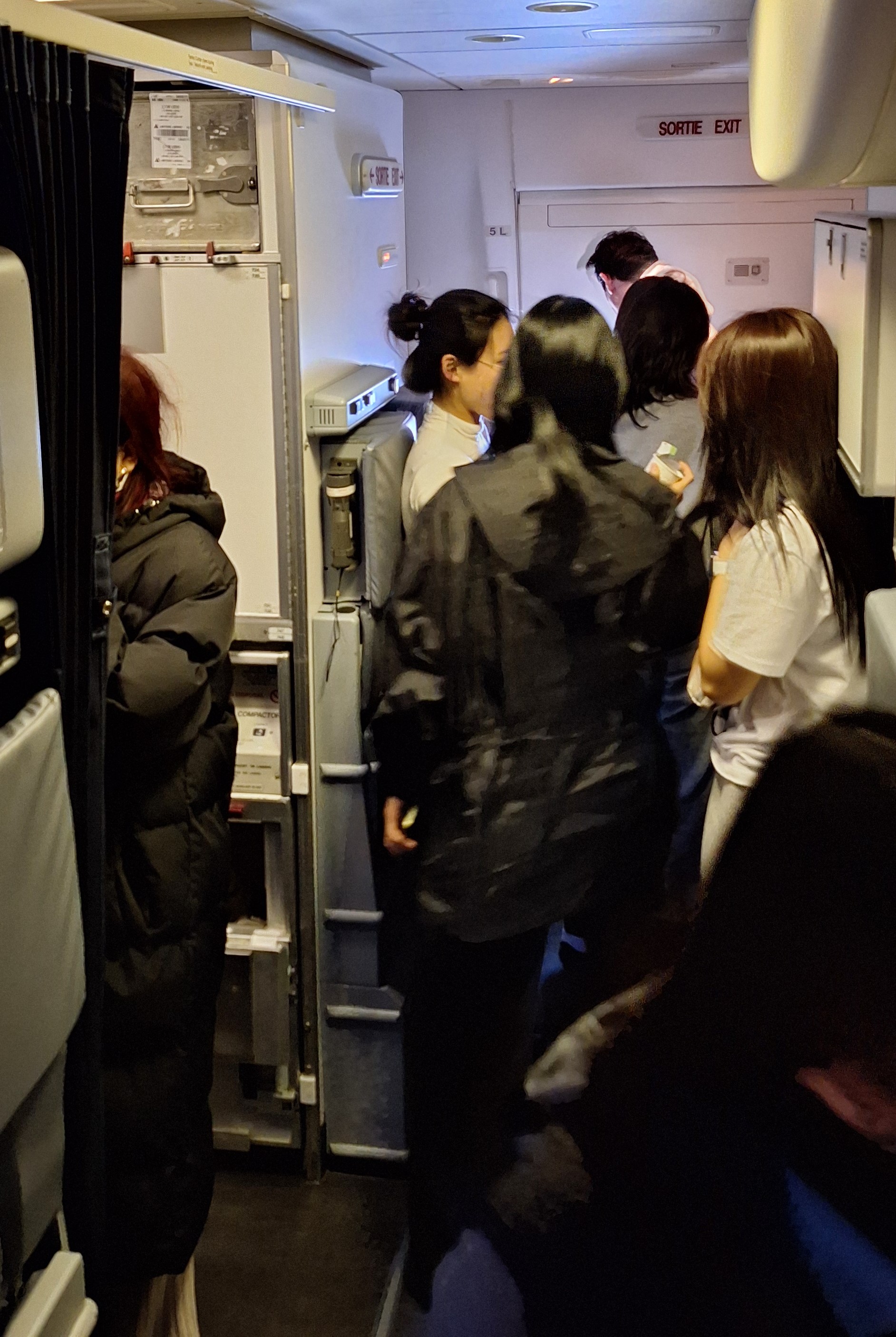 En el aire el tiempo es elástico, pero el espacio no. La diferencia entre una experiencia de lujo y una pesadilla de catorce horas es únicamente esa: el espacio. Soy lo que benévolamente podríamos denominar «corpulento», que viene a significar que estoy a unos quince centímetros de cintura de tener que pedir extensores para el cinturón de seguridad. En el vuelo de ida cometo el terrible, espantoso error de seleccionar un asiento de ventanilla. En la butaca del medio se sienta una mujer de corpulencia proporcional a la mía: es imposible que nuestras caderas no se pasen el vuelo bailando la lambada. Son doce horas y media de rigidez forzosa, intentando (sin ningún éxito) buscar una postura cómoda para dormir que no implique invadir el lebensraum de la vecina. Llegó a Seúl más agotado por la tensión que por el jet lag y la privación de sueño. En el vuelo de vuelta, sin embargo, el asiento central queda libre. Mi compañera de fila es una china de veinte años que estudia en Ámsterdam y se queda dormida incluso antes de que el avión llegue a la pista de despegue en Incheon. No es la única, por cierto. Por todo el avión una muchedumbre de asiáticos cae inconsciente en los primeros minutos del viaje mientras los europeos planificamos nuestras sesiones cinéfilas (yo me vi Barbenheimer y Misión Imposible 7 en dramática sucesión). El caso es que, con un asiento libre en el centro de la fila, encontrar una postura cómoda es bien fácil. Además escogí pasillo, así que pude levantarme a estirar las piernas cuando quise, que fue muchas veces. No dormí demasiado, pero incluso después de catorce horas y media de vuelo llegué a París descansado y fresco, y además de buen humor.