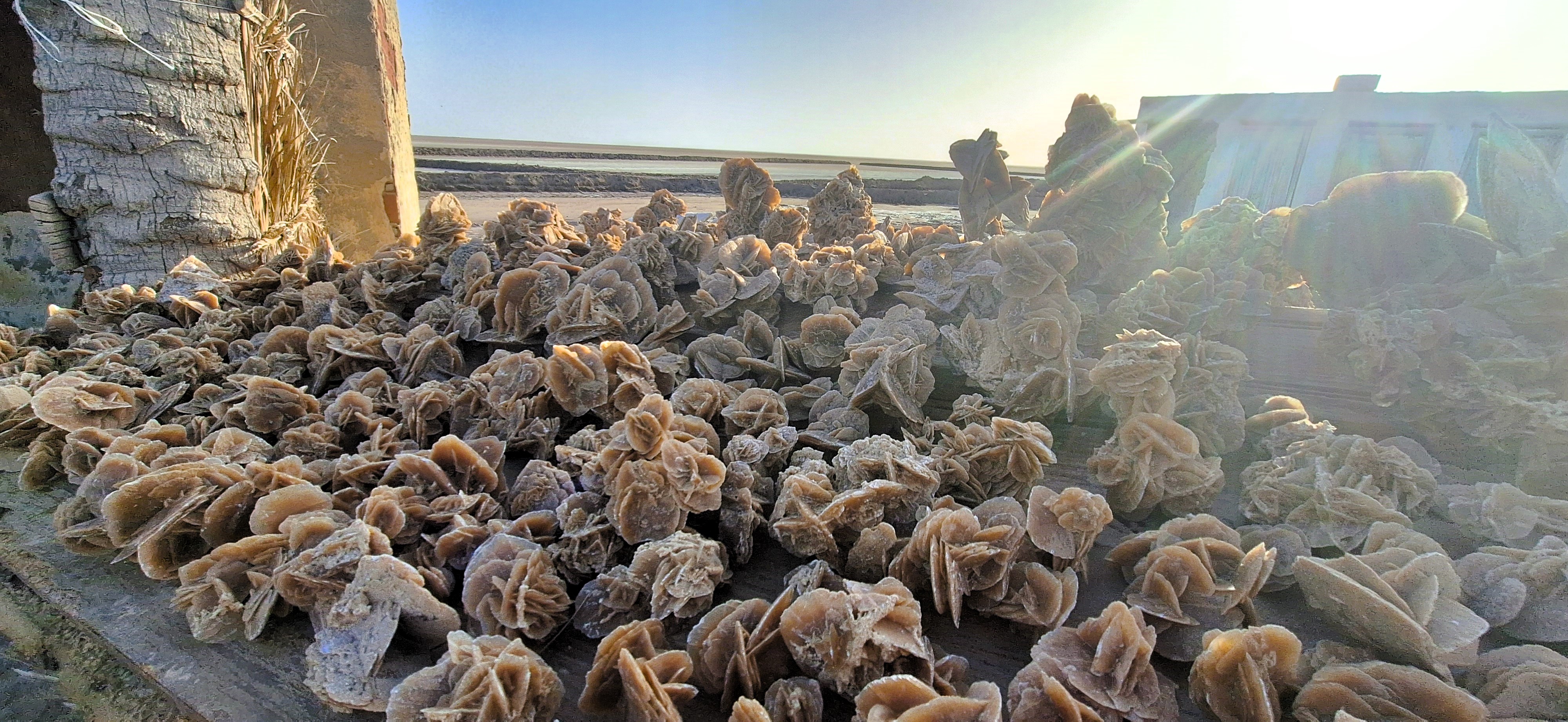 Rosas del desierto en un puesto de venta de recuerdos en la carretera de Chott El Jerd. No había nadie alrededor, podríamos habérnoslas llevado todas, lo que da una idea de su abundancia