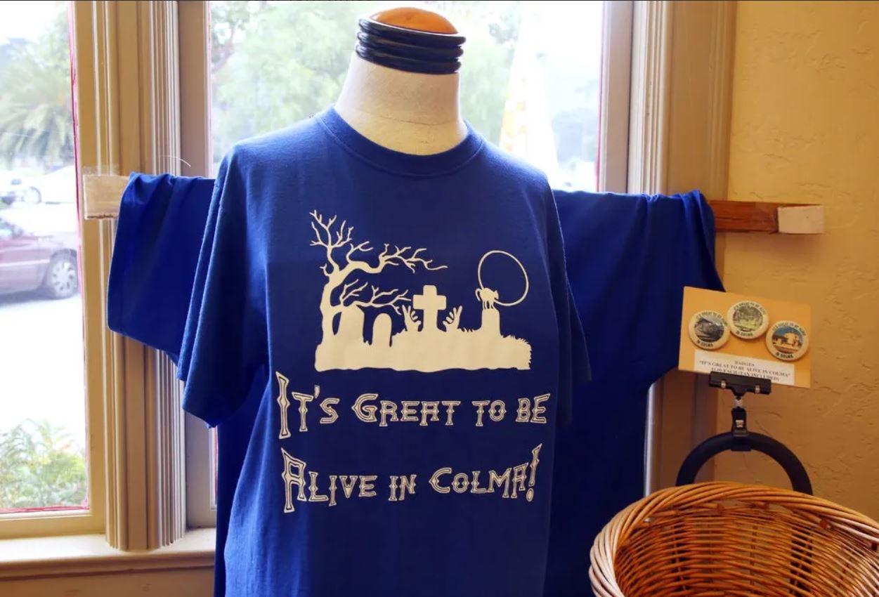 La camiseta de esa con el lema de la ciudad, sería utilizada por un zombie en una película cómica de terror de bajísimo presupuesto ambientada en la ciudad de Colma