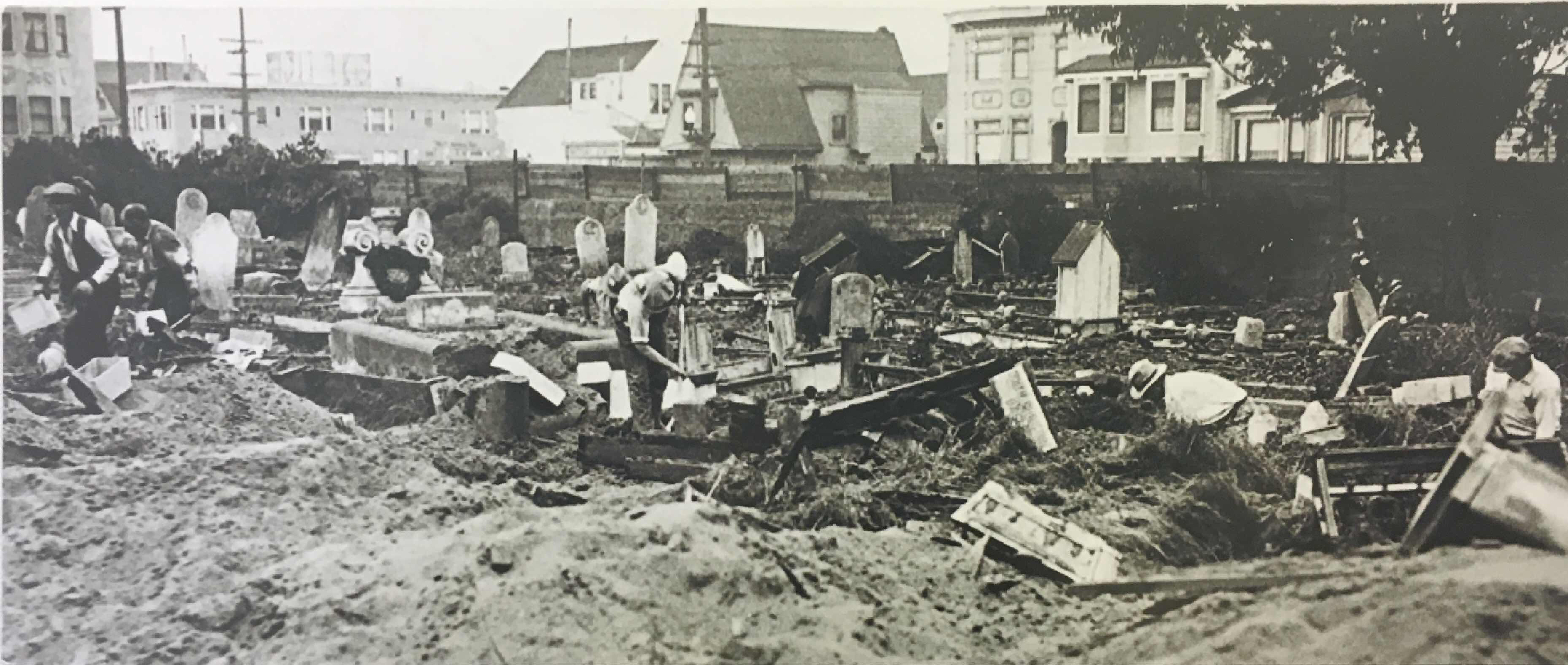 San Francisco no dejó de crecer durante los siguientes veinte años pese a una sucesión de catastróficas desdichas. En 1900 se prohibieron los enterramientos en la ciudad debido a uan epidemia de peste bubónica, pero se siguieron llevando a cabo porque transportar muertos no era algo barato. El terremoto y posterior incendio de 1906 llenaron los escasísimos cementerios de la ciudad, que ya andaba escasa de terrenos urbanizables dada su situación geográfica peninsular. Las funerarias locales, que nunca anduvieron escasas de trabajo, empezaron a comprar terrenos en un lugar que entonces se conocía como Cow Hollow. En 1912 se extendió el rumor de que las tumbas podían contagiar enfermedades y el ayuntamiento, que para nada se había conchabado con las funerarias, ordenó el traslado de miles de tumbas a los terrenos al sur de la península, y autorizó nuevos desarrollos urbanísticos en los antiguos cementerios. Los mil residentes de Cow Hollow, que ya vivían exclusivamente de los muertos, se incorporaron como municipio independiente en 1924 con el nombre con el que se le conoce hoy: Colma.