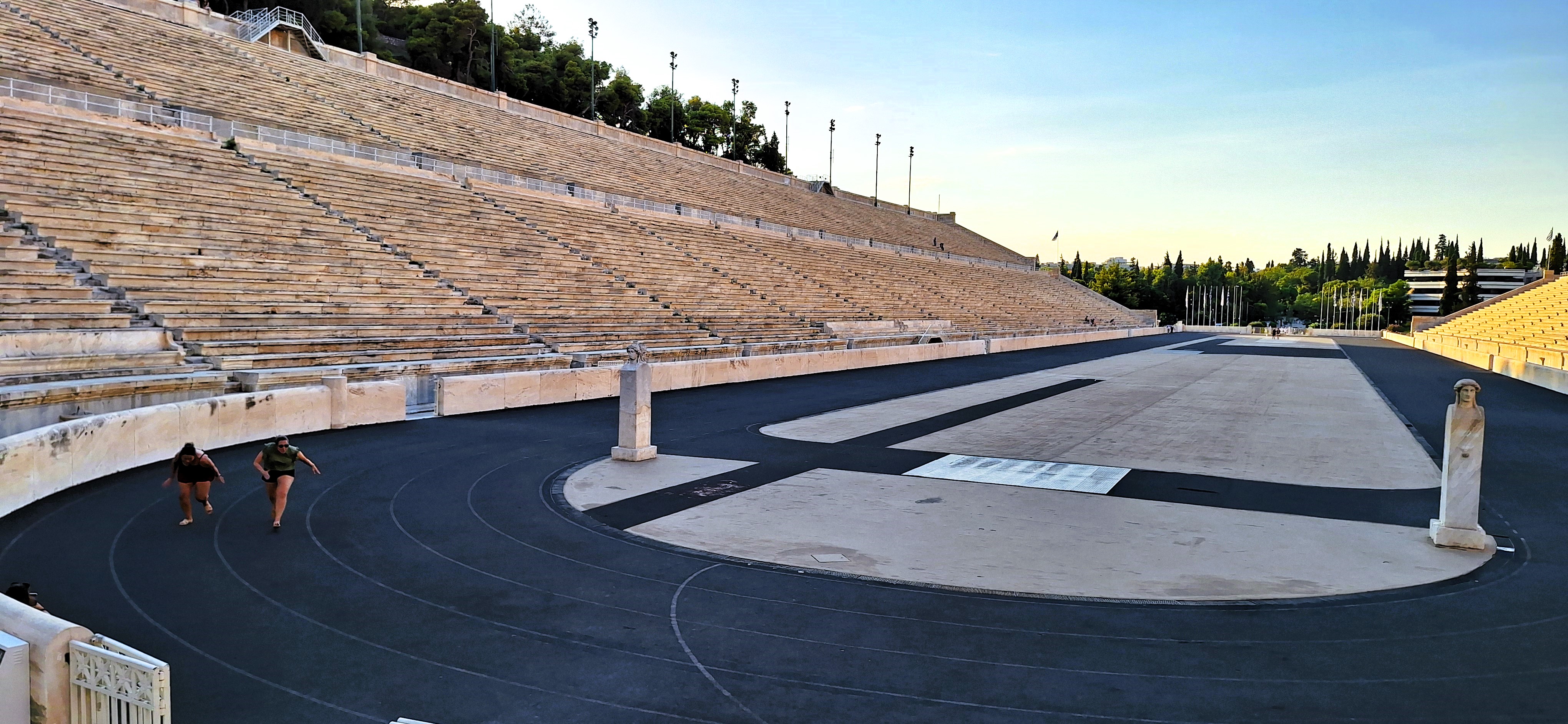 Nuestra última tarde ateniense la pasamos grabando vídeos a cámara lenta en el Estadio Olímpico (el de 1896, no el de 2004) para subirlos a Instagram con la banda sonora de Carros de Fuego. El estadio realmente es capaz de transportar al visitante a finales del siglo XIX, cuando el deporte era casi una extravagancia y desplazarse para disputar una carrera suponía unos gastos que la inmensa mayoría de los atletas no podían afrontar. De hecho en aquellos primeros juegos participaron 240 atletas, todos hombres, de los que dos tercios eran griegos. Sólo catorce países participaron, y sólo seis enviaron más de cinco deportistas. De hecho, cinco delegaciones enviaron un único atleta. Mención especial a Australia. Envió un único representante, y regresó con dos oros. Bueno, dos platas en realidad. Por entonces sólo se entregaban medallas de plata y de cobre; retroactivamente el COI las ha convertido en oro y plata, respectivamente, y ha agraciado a los terceros clasificados con medallas de bronce.
