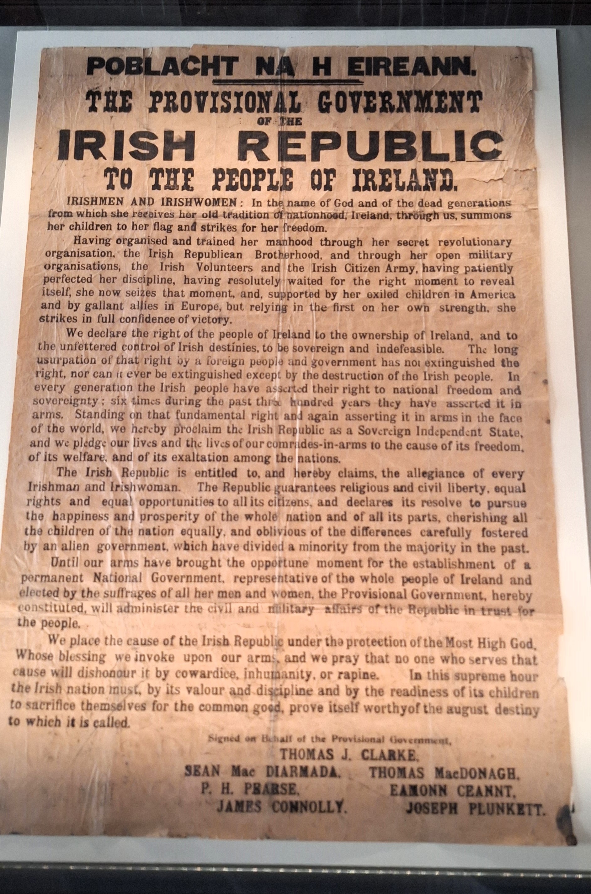 En la sede central de Correos, todavía en la calle O’Connell, compré las postales que siempre envío a mis amigos más recalcitrantes, junto con sus correspondientes sellos. El edificio sirvió de cuartel general para el conocido como Alzamiento de Pascua de 1916, el primer intento serio de los irlandeses de sacudirse el dominio británico, y el inicio del periodo revolucionario irlandés. La asonada estaba destinada a fracasar desde el principio, por su escasa preparación, falta de armamento y especialmente por la ausencia de apoyo popular. Los ingleses la aplastaron sin demasiados problemas, pero la crueldad absolutamente innecesaria no sólo contra los participantes en la revolución sino contra los civiles dublineses provocaron una reacción antibritánica en la población irlandesa. Para mayor ironía, Londres culpó al Sinn Fein, un partido por entonces unionista y monárquico que, precisamente gracias al señalamiento erróneo de los británicos, acabó siendo crucial en la independencia, apenas seis años más tarde.