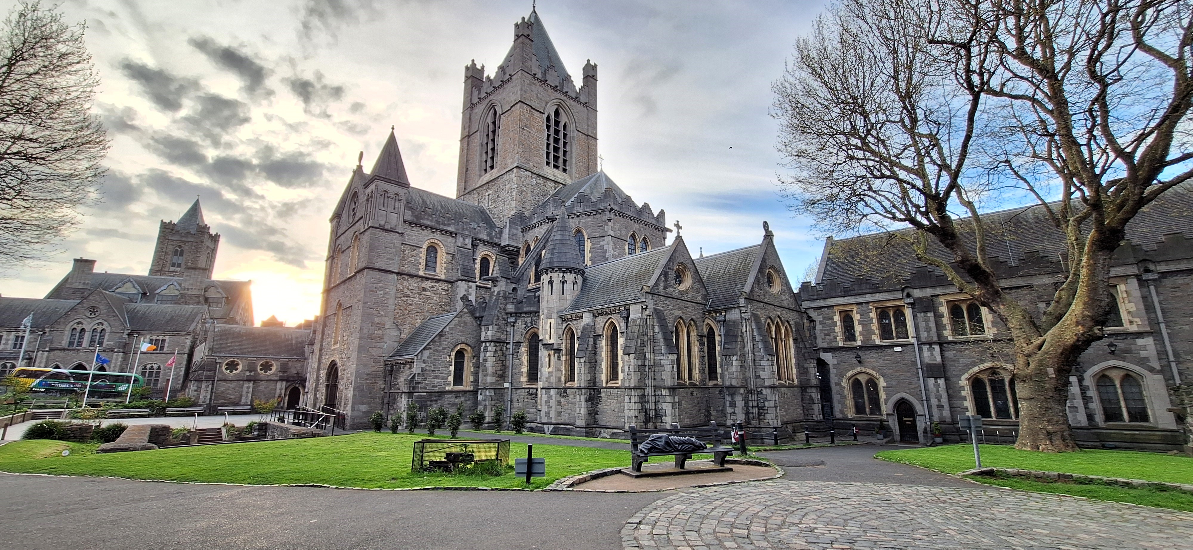 Pasamos la tarde visitando catedrales, porque en Dublín hay tres, una de ellas católica. El 70% de los irlandeses son católicos; probablemente el catolicismo es el rasgo social irlandés más reconocido internacionalmente. Apenas un 5% de la población es anglicana, pese a lo cual en Dublín hay dos catedrales de la Iglesia de Irlanda (la rama local de la Iglesia de Inglaterra). Una de ellas, la de San Patricio, fue la catedral católica hasta 1536, cuando se produjo el cisma anglicano. Pese a que la Iglesia de Irlanda tuvo carácter estatal hasta finales del siglo XIX por imposición británica, la mayoría de la población permaneció fiel al catolicismo, y aún lo hacen. Los doce euros que cuesta la entrada para la catedral de Chirstchurch incluyen la posibilidad de disfrazarse de paje medieval para Instagramearse sin complejos, y la visión de una de las atracciones turísticas más bizarras que recuerdo haber visto: los cadáveres momificados de un gato y una rata.
