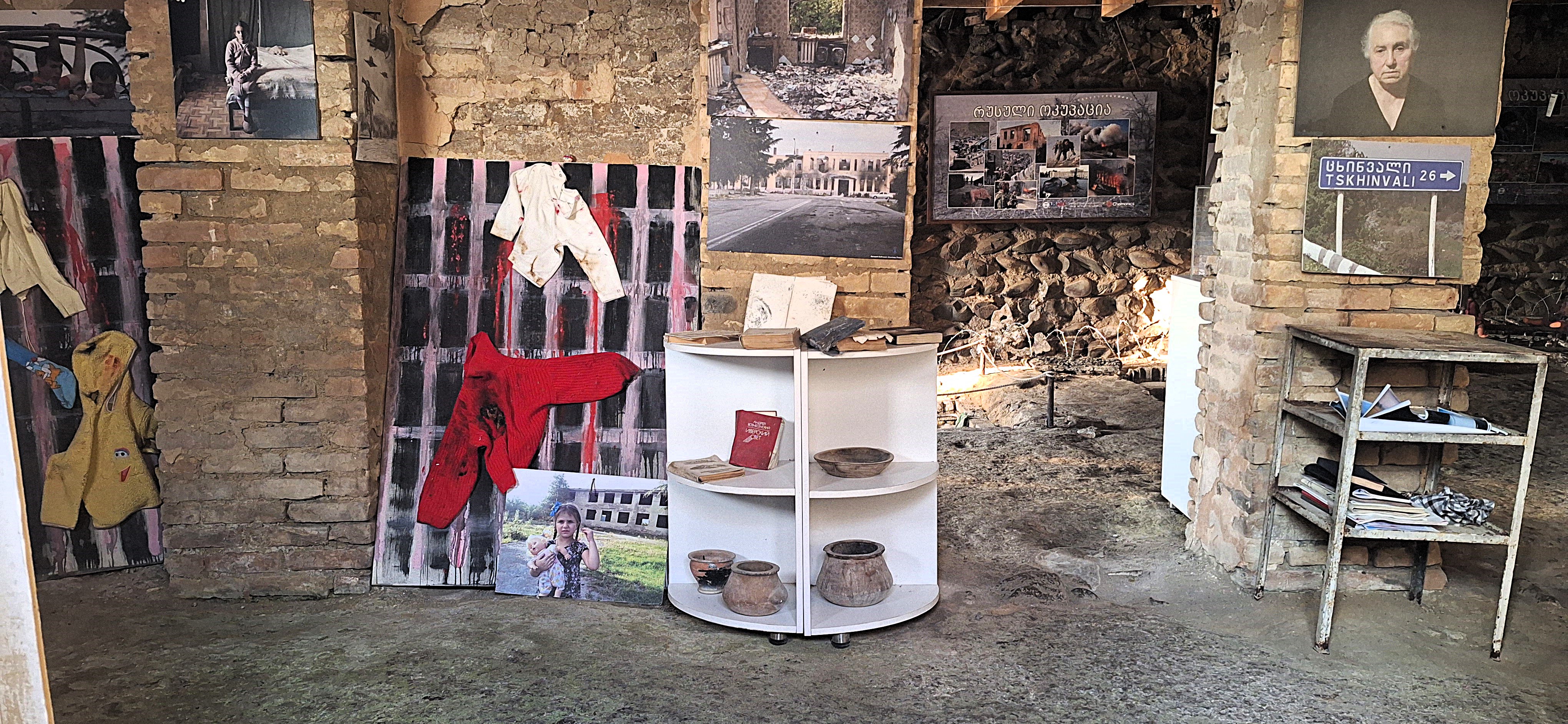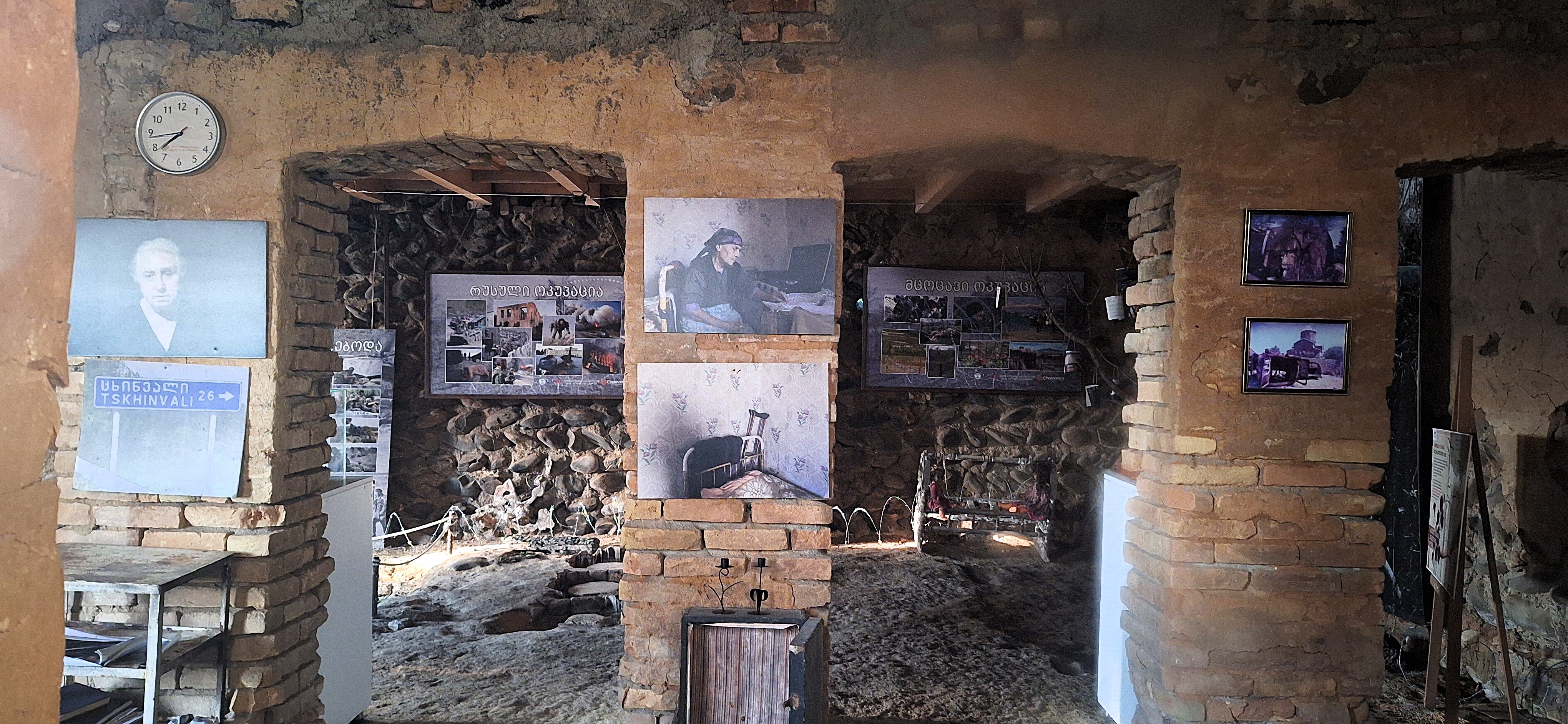 En realidad no teníamos intención de ir a ver la frontera tan de cerca. El último pueblo de Georgia en la carretera de Tsjinvali es Ergneti, y allí se encuentra un museo sobre la guerra de 2008 que queríamos visitar. El museo en realidad es el sótano de la casa de una mujer llamada Lia Chlachidze, que vive a poco más de ciento cincuenta metros del límite con Osetia del Sur. Su casa ardió hasta los cimientos durante los combates, y, tras reconstruirla, Lia acumuló durante años fotografías y objetos relacionados con el conflicto osetio, donados por vecinos, amigos y conocidos. Juguetes quemados, trozos de metralla y fotografías de familiares llorando la pérdida de sus seres queridos conviven en el sótano de la casa de Lia en un recordatorio de los horrores de la guerra.