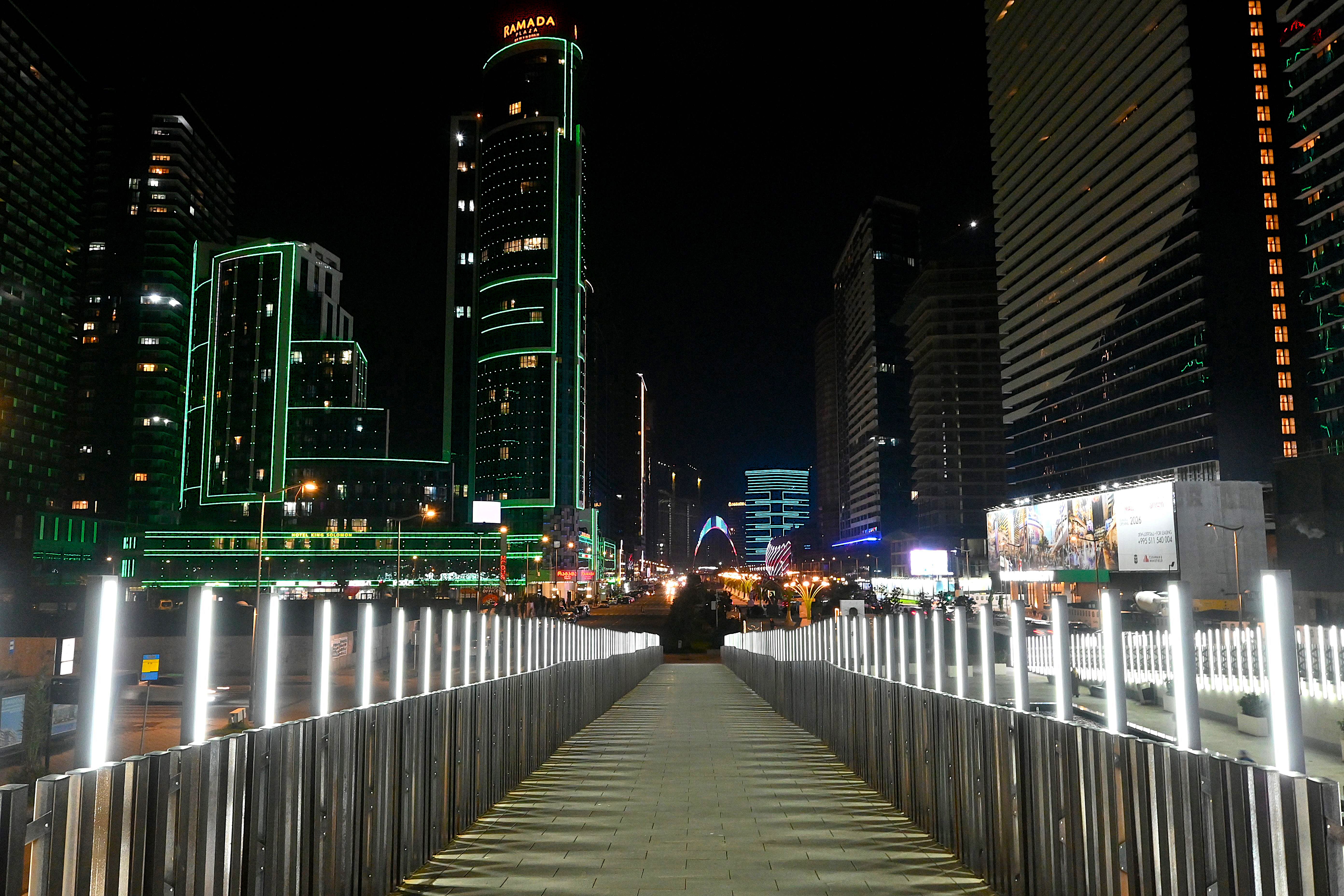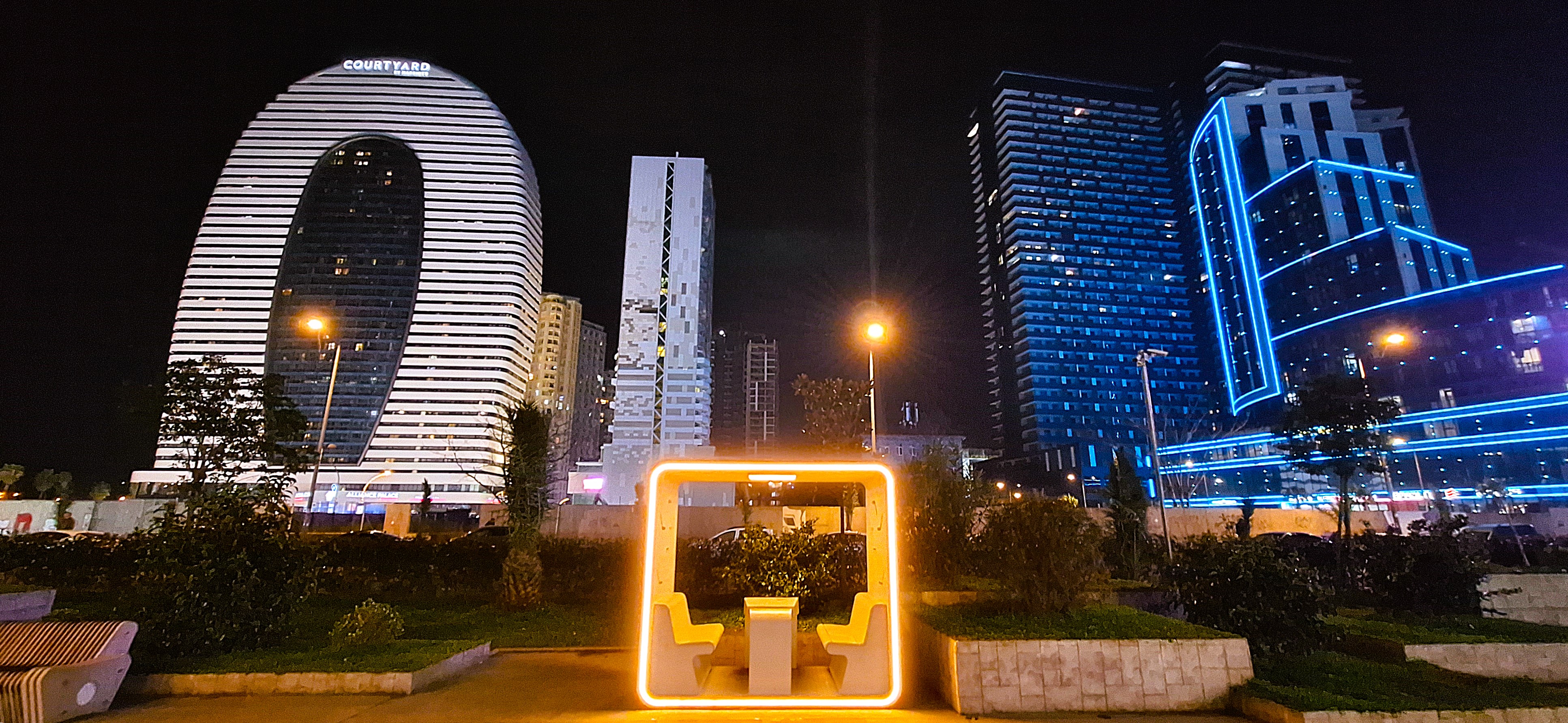 El bulevar de la Avenida Juli Shartava, flanqueado por rascacielos a ambos lados, me recordó mi primera impresión de Abu Dabi, una ciudad que parecía potemkiana, más cerca del decorado que de la realidad. Aquí, sin embargo, había mucha más gente; grupos de jóvenes en los kioskos futuristas con Wifi incorporada colocados a lo largo del paseo. El abuso de los LED en las aristas de los edificios le da un aire cyberpunk e irreal al paseo, pero también le arrebata cualquier atisbo de personalidad. La convivencia de commieblocks sin apenas reforma con otros claramente reformados y con monstruos de acero y cristal firmados por bufetes de arquitectura de postín hacen de la caminata un viaje en el tiempo, desde la era soviética hasta la Georgia del futuro. Un poco como cruzar de lado a lado el propio país.