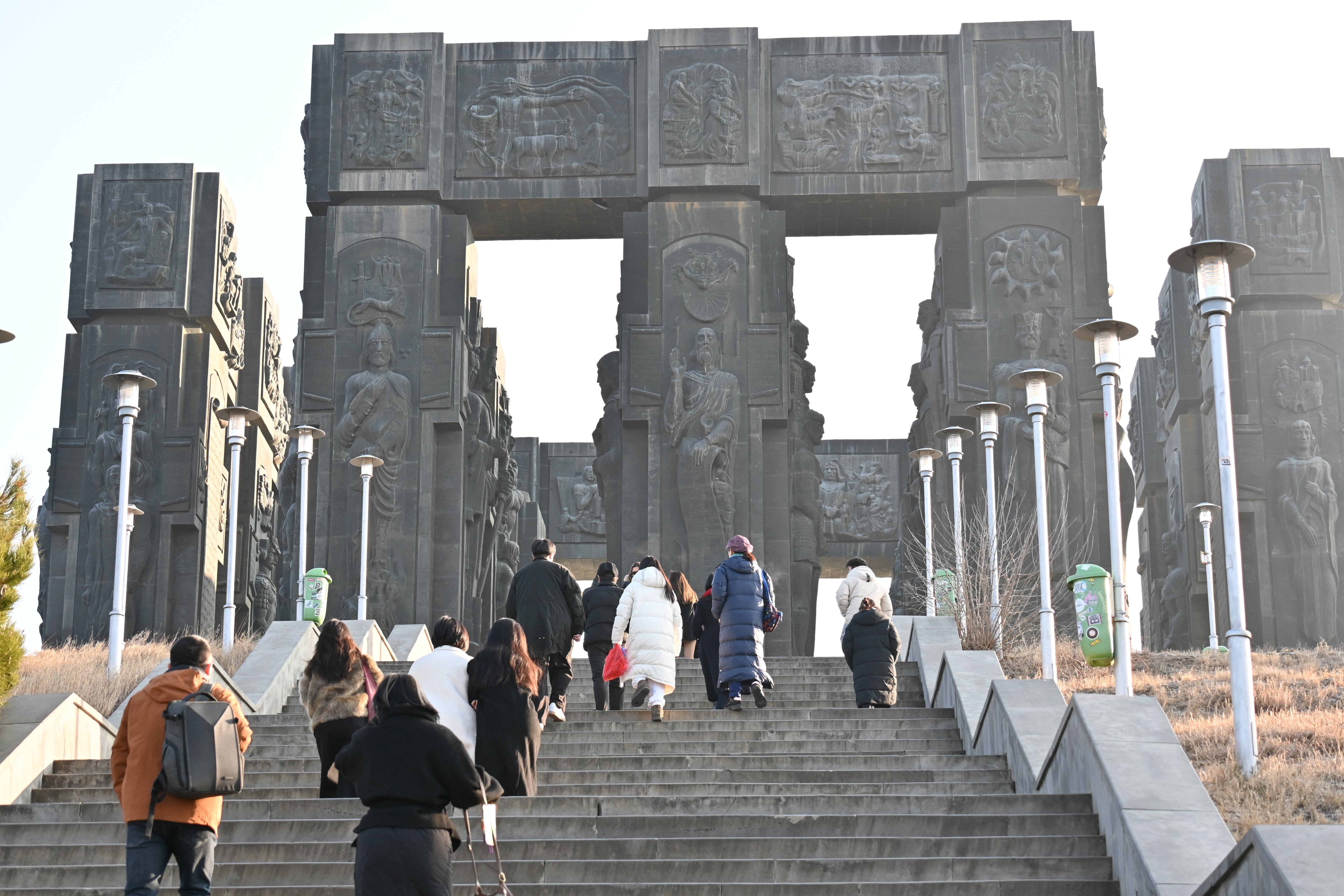 Los días de Tiflis los pasamos visitando monumentos raros y monasterios a partes iguales. A las afueras de la capital se encuentra uno de los conjuntos esculturales más bizarros de Europa, y también de Asia, si consideramos que el país es asiático. La Crónica de Georgia consiste en dieciséis columnas de piedra de 35 metros de alto con relieves en bronce representando episodios de la Historia política y religiosa del país. Pese a que parece llevar en lo alto de la colina desde tiempo inmemorial, lo cierto es que empezó a construirse en 1985, y fue abandonado en 1991 tras el colapso de la URSS, que fue seguido por la guerra civil georgiana. Lo mejor que tiene, además de los fotones que se pueden hacer, es las vistas sobre la capital y sobre el Mar de Tiflis, un lago artificial de 1200 hectáreas de superficie que proporciona agua a la ciudad.