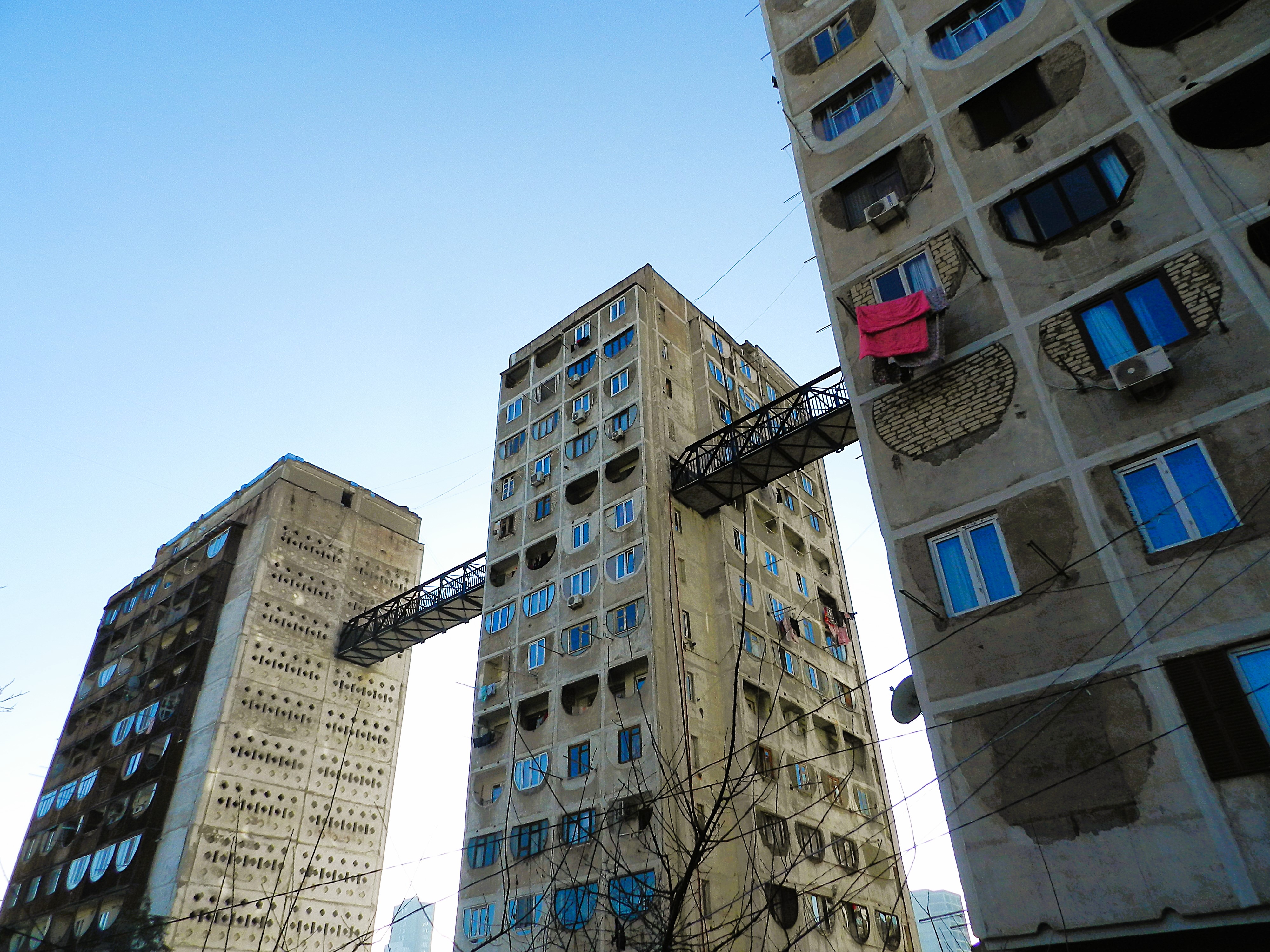 Yo no confío mucho en esos puentes en la parte superior de esos edificios georgianos. Mucho menos considerando que es una zona de terremotos, y del destino que puentes aéreos similares, en edificios que aparentaban ser más estructuralmente sólidos que estos, tuvieron en el terremoto de Myanmar y Tailandia.
