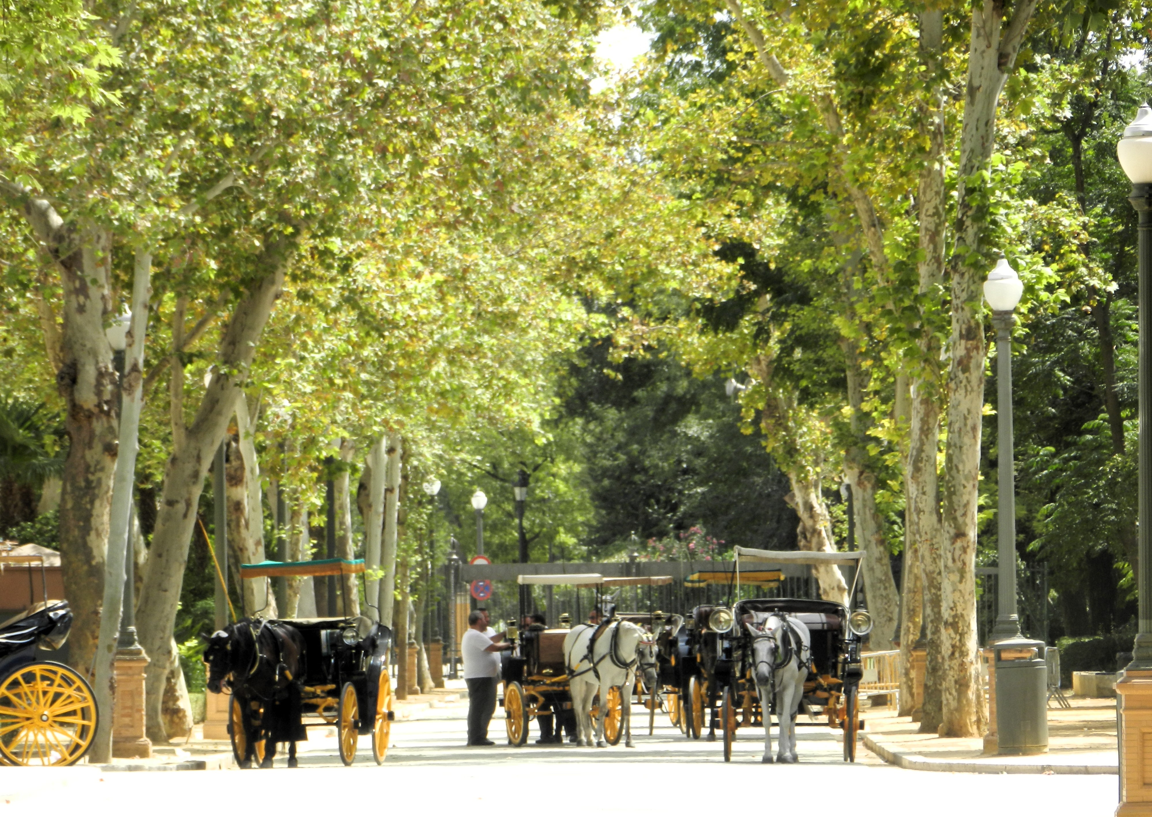 El hotel Alfonso XIII a lo mejor no está ni en el top 20 de edificios sevillanos. A una manzana de distancia están, por ejemplo, el Palacio de San Telmo y la Fábrica de Tabacos. A un kilómetro está la Giralda. Pero a mi me resulta espectacular cuando me lo encuentro al salir del hostal. Había llegado la noche antes a la ciudad desde Almería, en un avión de hélices, probablemente el único vuelo regular autonómico que hay en España fuera de los archipiélagos. Mi alojamiento era un hostal llamado «Sevilla Kitsch» y a fe mía que cumplía lo prometido. La decoración más hortera al sur de Despeñaperros. De los Pirineos, seguramente. Pero la desintoxicación es rápida cuando el destino es un lugar como el Parque de María Luisa, incluso, una vez más, a pleno sol. En la Plaza de España no éramos demasiados turistas, presumo que debido a los cuarenta y dos grados a la sombra, si hubiera habido alguna sombra. Aún así había gente haciéndose fotos en el banco correspondiente a su provincia: hay 48 porque Canarias no estaba dividida en dos en 1929, cuando se construyó el lugar aprovechando una Exposición Iberoamericana. Yo me hago dos, una en Madrid y otra en Barcelona. Creo que arrastraré esta disonancia identitaria hasta la tumba.