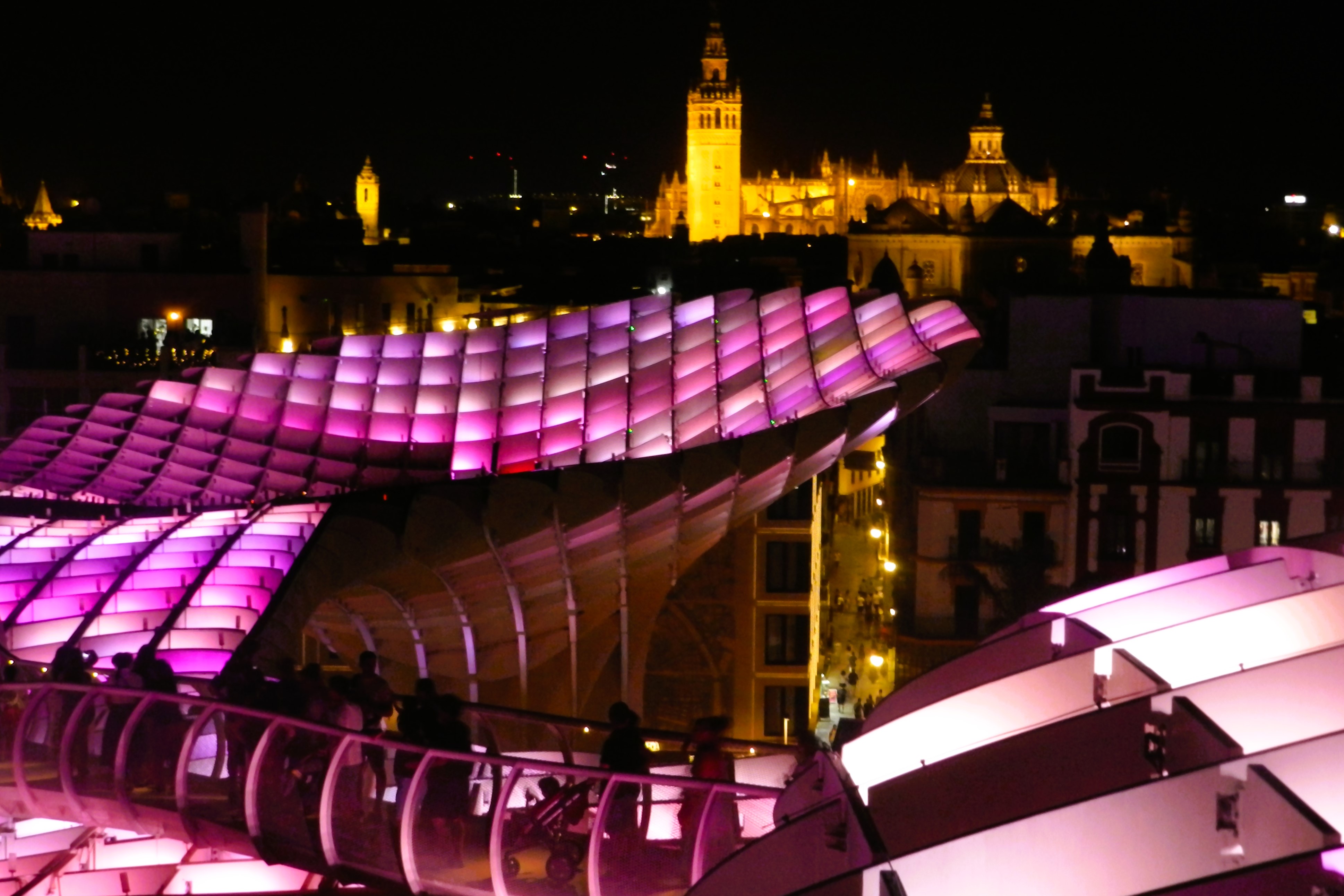 Las cosas han cambiado mucho desde mi primera visita a la capital andaluza, 32 años antes, precisamente durante la Expo Universal de 1992. Al entrar en coche en la ciudad mis padres subieron las ventanillas y bajaron los pestillos de las puertas. «Por seguridad», dijeron, aunque mantener los vidrios sellados eran muchos boletos para el fallecimiento por golpe de calor. Sevilla tenía la misma fama que el Bronx por entonces o que El Raval barcelonés ahora. En mi segunda visita, Sevilla es amable, divertida, ruidosa y feliz de haberse conocido, como debe ser. A las Setas originalmente se les llamó «Metropol Parasol», pero desde antes de inaugurarse los sevillanos le cambiaron el nombre al monumento, y ahora «Las Setas de Sevilla» es su nombre oficial. Imagina no bancarles. Subí a eso de las once de la noche; desde arriba se veía el skyline de la ciudad sobre un lecho de colores. Dormí tres noches en Sevilla pero sólo tuve un día para ver la ciudad. Fue como intentar leerse el Quijote en una tarde. Necesito que no pasen 32 años hasta la próxima vez.